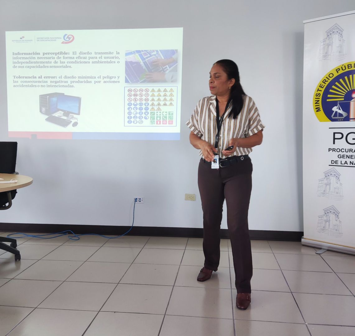 La Secretaría de Derechos Humanos, Acceso a la Justicia y Género de la Procuraduría General de la Nación con la participación de funcionarios y funcionarias de la Dirección de Informática, Dirección de Infraestructura y Mantenimiento, Departamento de Bienestar Social y del Empleado, Sección de Atención Primaria, UPAVIT/SEPROVIT, Departamento de Protección y Oficina de Atención Ciudadana, realizó el pasado 2 de agosto de 2022 la capacitación denominada “Accesibilidad Universal para Personas con Discapacidad”, dictada por personal especializado de la Secretaría Nacional de Discapacidad (SENADIS).