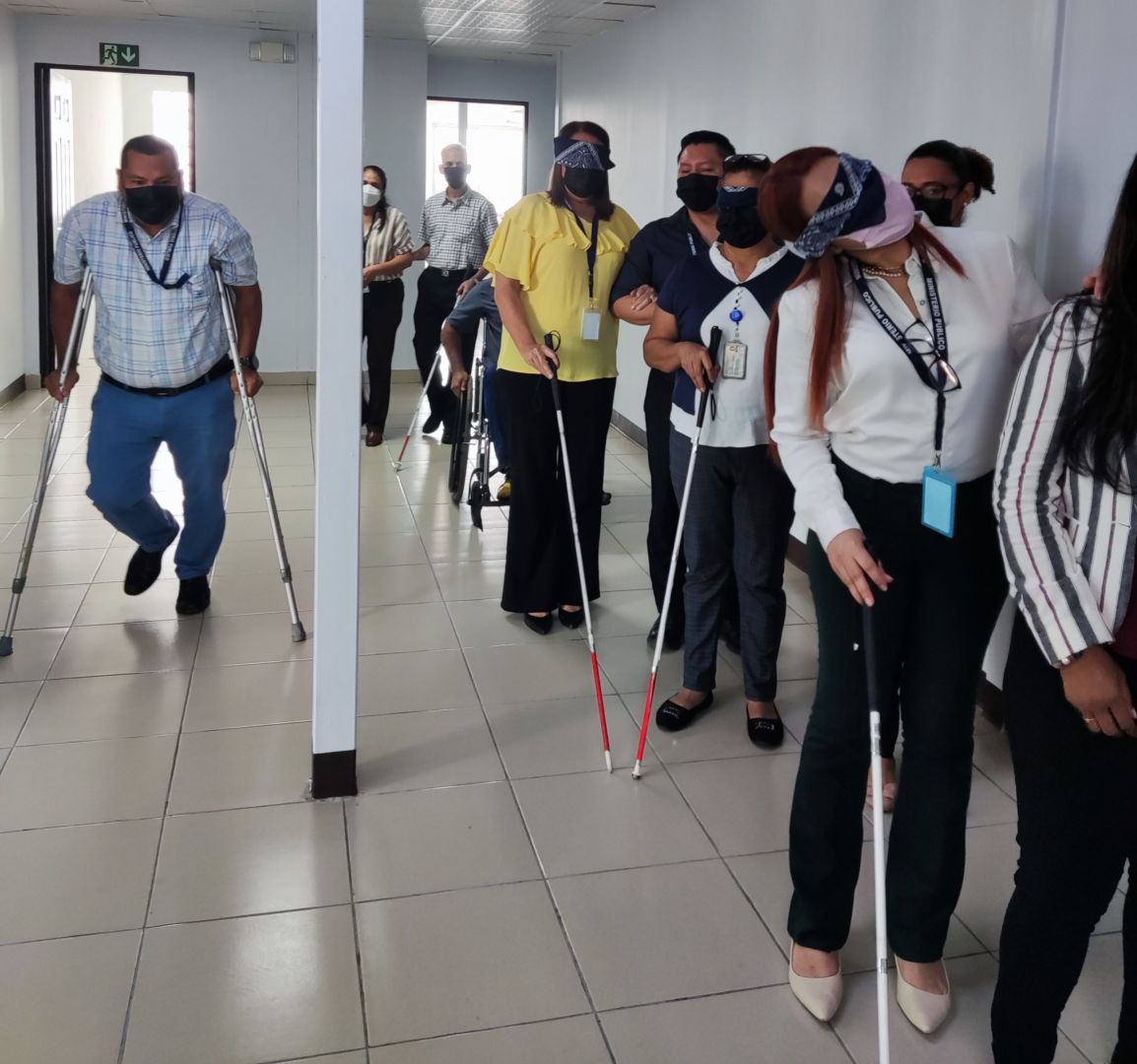 Se realizaron dinámicas de grupo que crearon empatía en los y las participantes sobre la condición de las personas con discapacidad visual, física o movilidad reducida e intelectual. Igualmente, se presentaron videos sobre las maneras correctas de conducirnos ante este grupo de personas y se abordaron temas como: “Marco Legal de la Discapacidad”, “Experimentando la Discapacidad”, “Accesibilidad Universal”, “Acceso a la información mediante el uso de los Recursos de la Tiflotecnología.