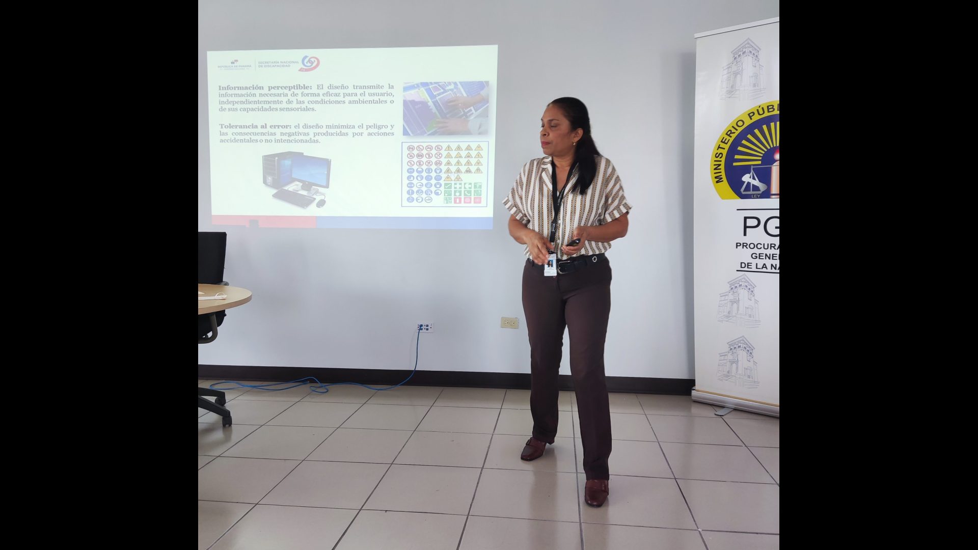 La Secretaría de Derechos Humanos, Acceso a la Justicia y Género de la Procuraduría General de la Nación con la participación de funcionarios y funcionarias de la Dirección de Informática, Dirección de Infraestructura y Mantenimiento, Departamento de Bienestar Social y del Empleado, Sección de Atención Primaria, UPAVIT/SEPROVIT, Departamento de Protección y Oficina de Atención Ciudadana, realizó el pasado 2 de agosto de 2022 la capacitación denominada “Accesibilidad Universal para Personas con Discapacidad”, dictada por personal especializado de la Secretaría Nacional de Discapacidad (SENADIS).