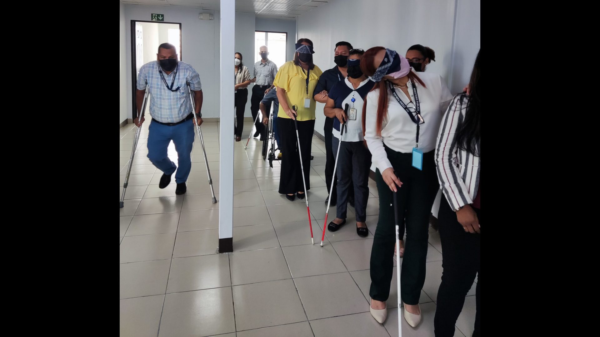 Se realizaron dinámicas de grupo que crearon empatía en los y las participantes sobre la condición de las personas con discapacidad visual, física o movilidad reducida e intelectual. Igualmente, se presentaron videos sobre las maneras correctas de conducirnos ante este grupo de personas y se abordaron temas como: “Marco Legal de la Discapacidad”, “Experimentando la Discapacidad”, “Accesibilidad Universal”, “Acceso a la información mediante el uso de los Recursos de la Tiflotecnología.