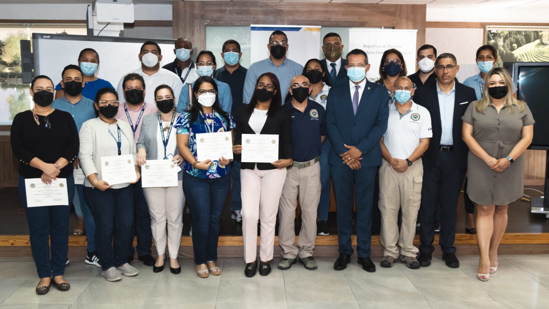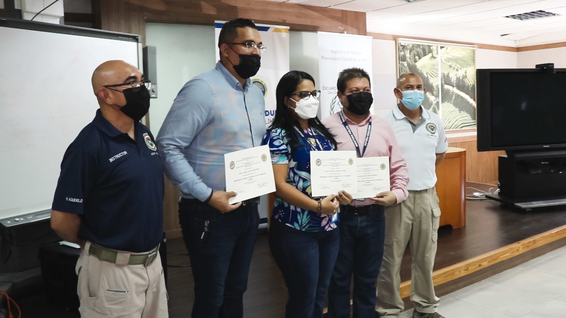En el acto de clausura 19 Fiscales de diferentes secciones recibieron, de manos del Secretario General del Ministerio Público y de los instructores Hugo Agudelo y Raúl Antonio Suárez, los certificados que los acreditan como participantes del curso.