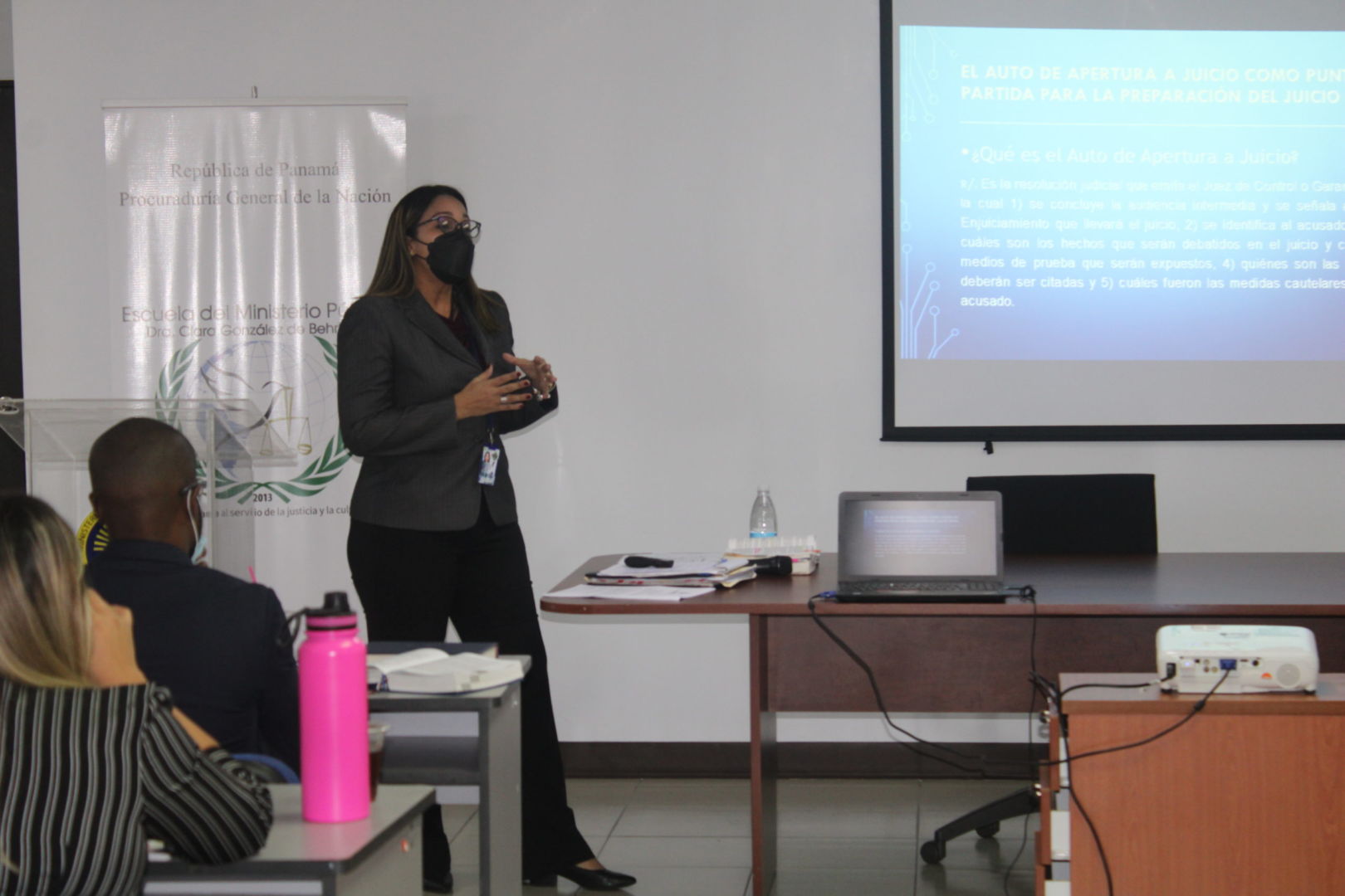 La fiscal coordinadora de la Sección de Juicio de Panamá Oeste, Ixcenys de Roux, nos habló del Auto de Apertura a Juicio como punto de partida para la preparación al juicio, por su parte el fiscal superior William Granados de la Sección Primera de Delitos Contra la Libertad e Integridad Sexual, nos compartió información de La Acusación y sus Requisitos.
