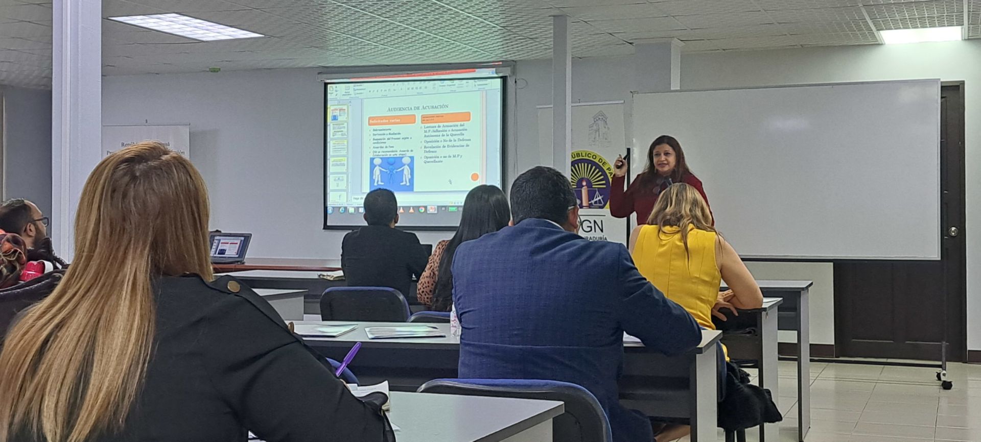 Cabe señalar, que en esta capacitación nos acompañaron como facilitadores la Fiscal de Circuito de la Sección de Delitos Contra la Vida y la Integridad Personal, Raquel Pinilla, quien abordó el tema Fase Intermedia en el SPA y el Control de los Plazos; el Sobreseimiento y el Reenvió ante la oposición de la Victima.