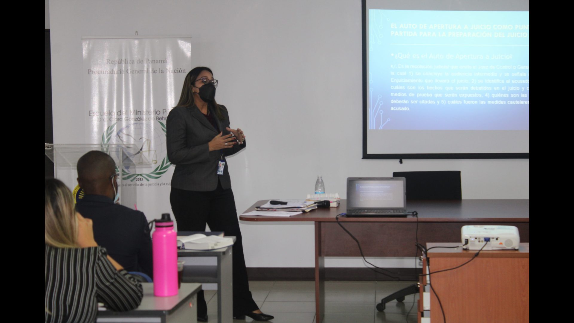 La fiscal coordinadora de la Sección de Juicio de Panamá Oeste, Ixcenys de Roux, nos habló del Auto de Apertura a Juicio como punto de partida para la preparación al juicio, por su parte el fiscal superior William Granados de la Sección Primera de Delitos Contra la Libertad e Integridad Sexual, nos compartió información de La Acusación y sus Requisitos.