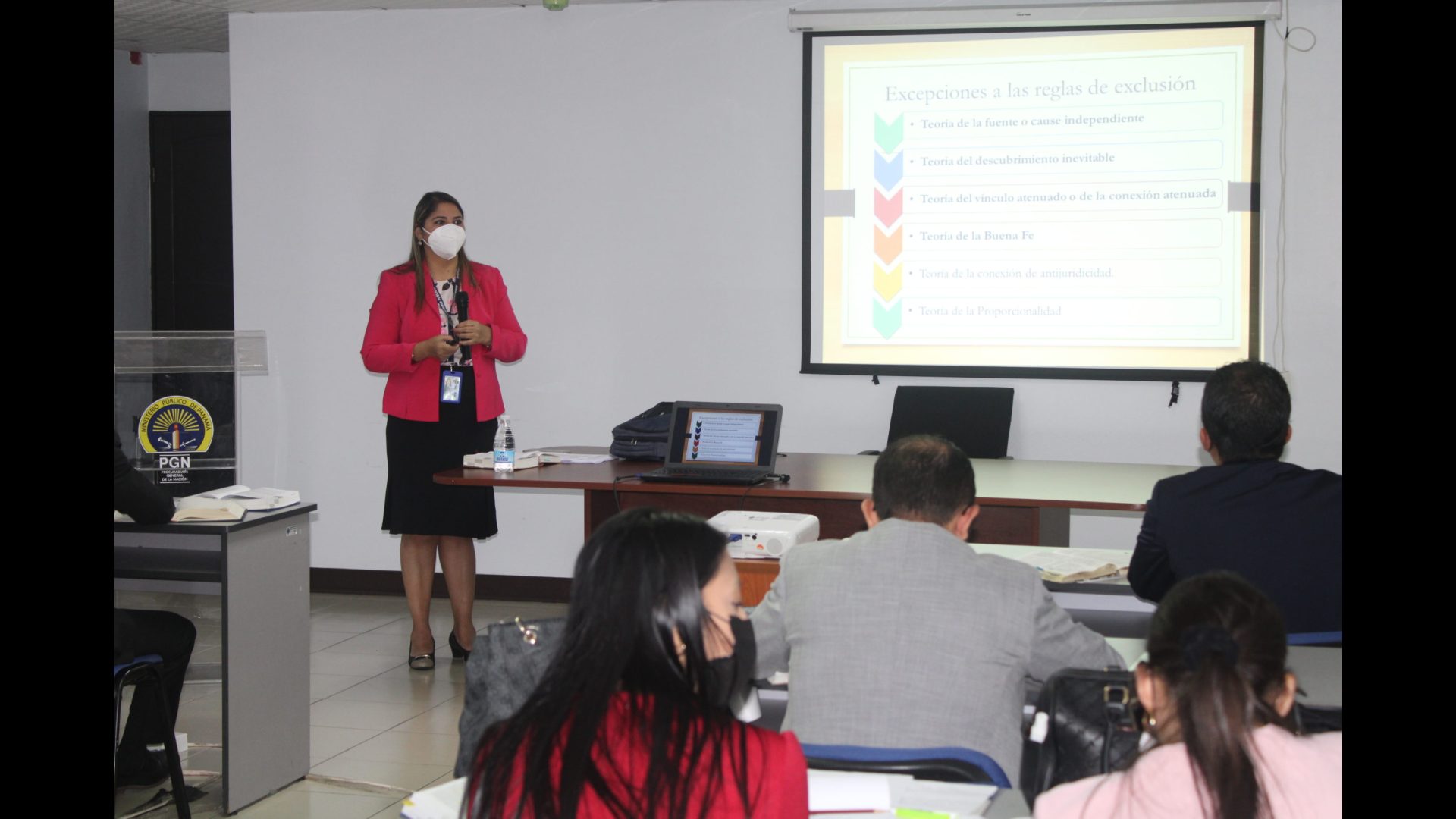 La fiscal de circuito, Elizabeth Carrión, de la Sección Segunda de Delitos Contra el Patrimonio, expuso los temas de Alegaciones Previas en las Audiencias de Fase Intermedia, quien compartió con los fiscales el tema de las Incompetencias, Nulidades. Impedimentos y Recusaciones. Por su parte la fiscal superior, Dayra Botello, de la Sección de Asistencia a Juicio de la Fiscalía Especializada de Familia, tocó el tema del Rol del Fiscal con énfasis en la Revelación de Evidencias y Objeciones a la Prueba.