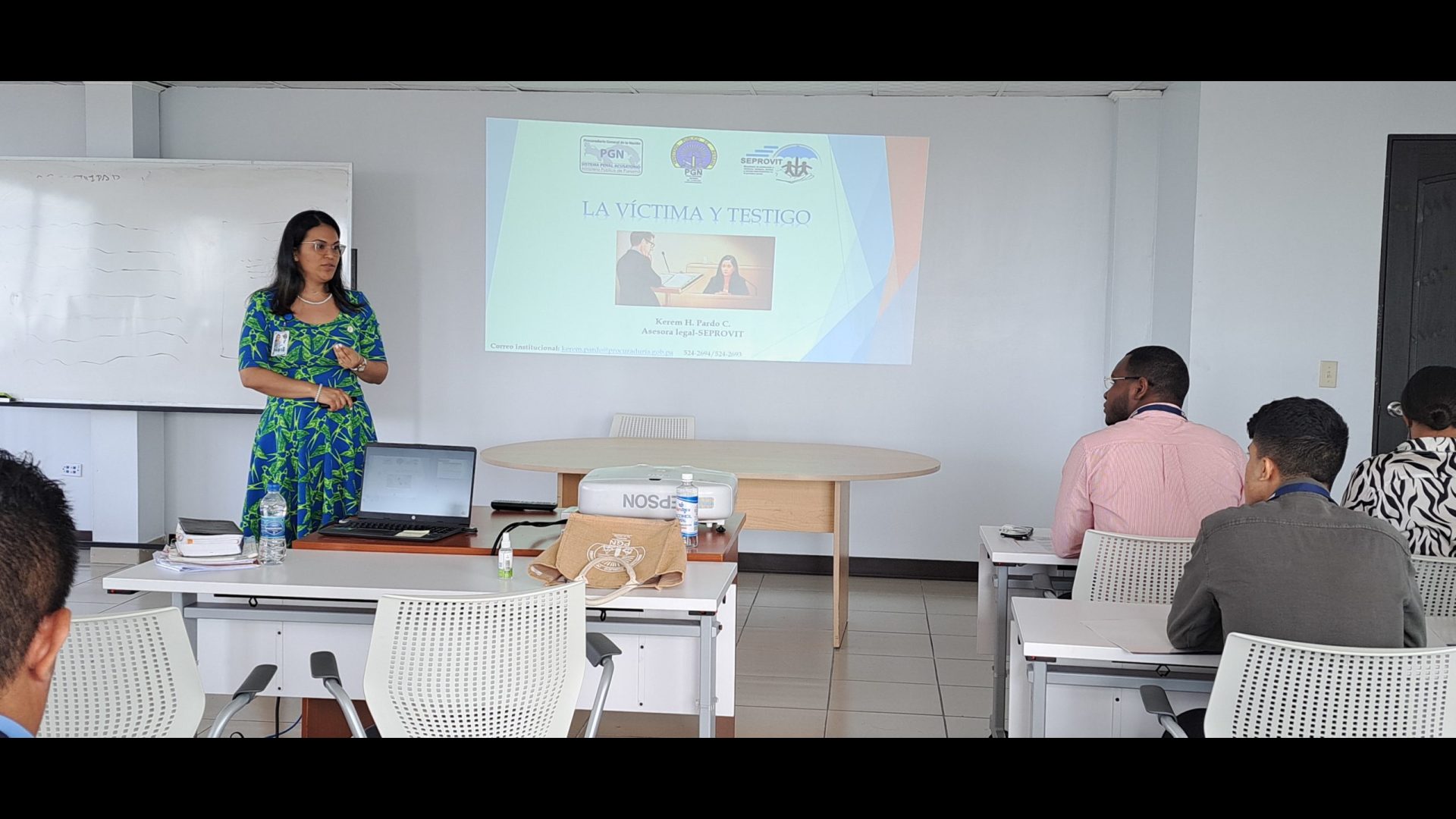 Dentro de la jornada se contó con la participación de la fiscal coordinadora de la Sección de Atención Primaria de la Subregional de Chepo, Yara Vega, quien le explicó a los participantes las actuaciones iniciales, el uso de la plataforma Tecnológica del SPA, la entrevista, los elementos de prueba.