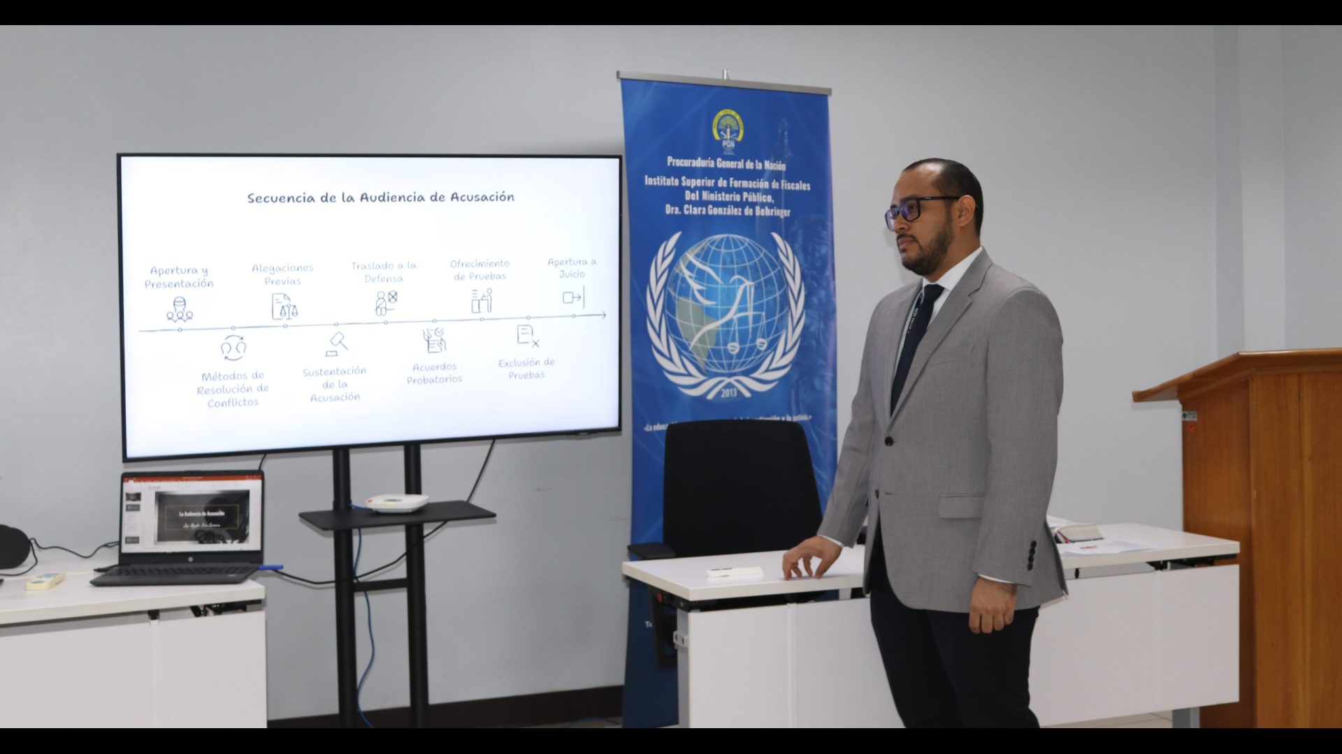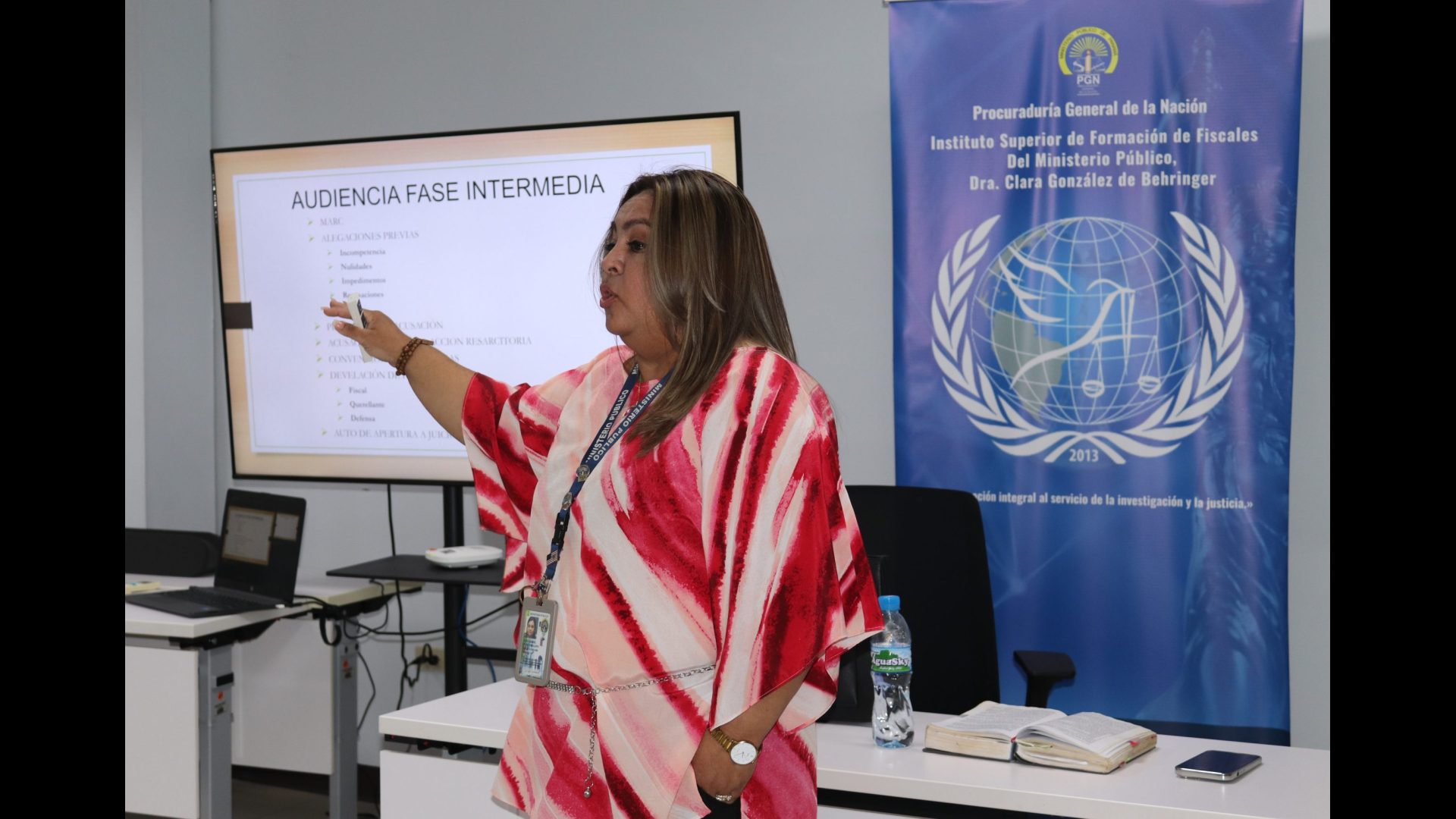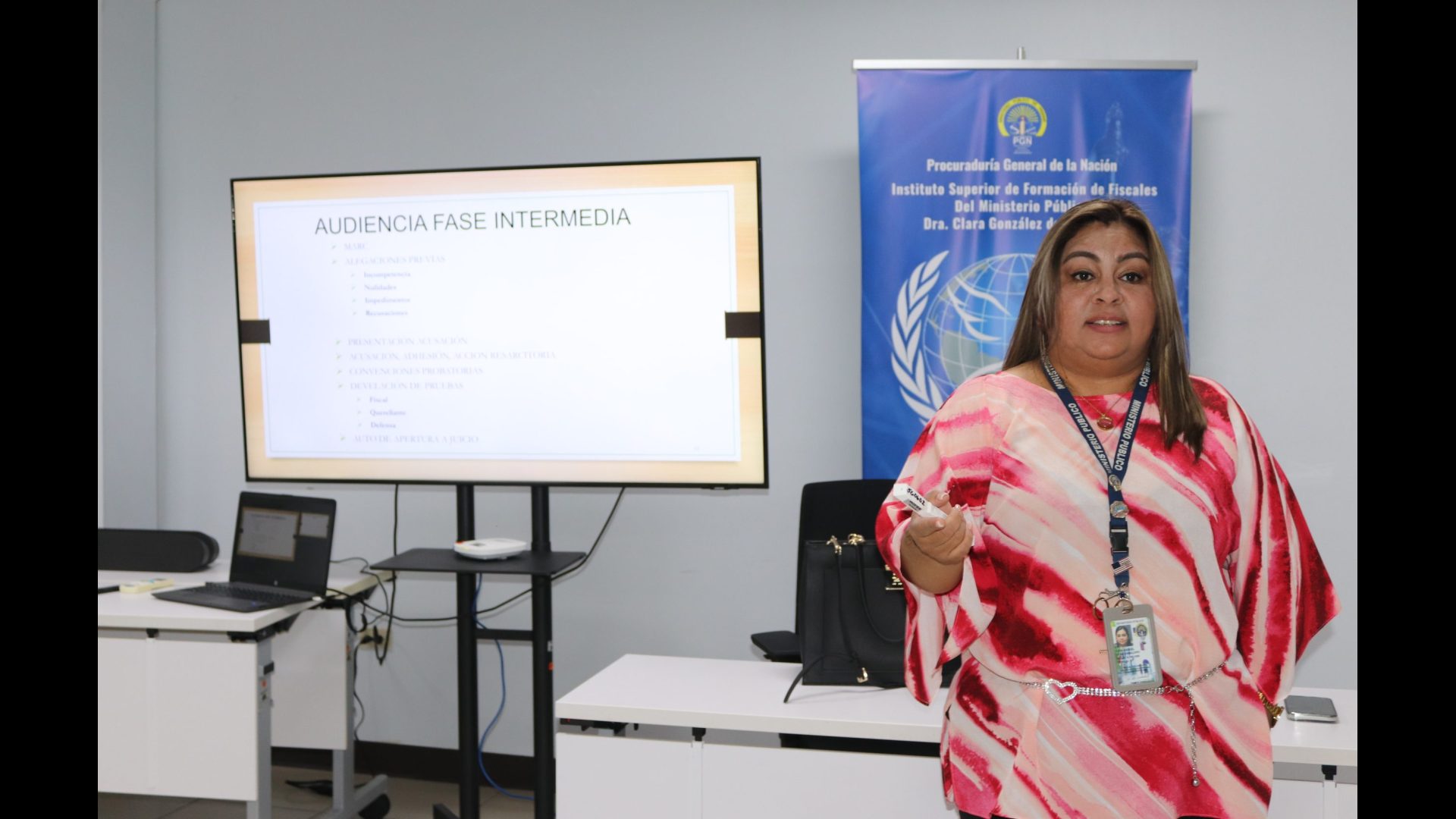 El Instituto Superior de Formación de Fiscales del Ministerio Público Dra. Clara González de Behringer durante el mes de abril organizó la jornada académica Fase Intermedia: Estructura del Escrito de Acusación y Litigación en Audiencias, en la cual participaron 22 funcionarios de la institución entre asistentes operativos y fiscales de la Fiscalías Especializadas contra la Delincuencia Organizada, Fiscalías Anticorrupción, Secciones de Atención Primaria, Contra el Patrimonio Económico, Homicidio y Femicidio, contra la Seguridad Colectiva, contra los Delitos Sexuales, Penal de Adolescentes y Propiedad Intelectual de las Provincias de Colón, Panamá Oeste, Panamá, San Miguelito, Los Santos y Veraguas.