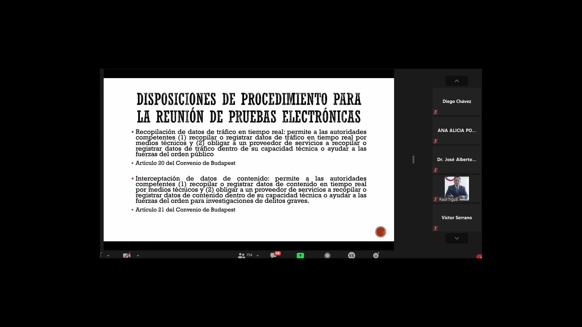 Seguidamente Mysti Degani, Fiscal Principal de la Sección de Crímenes Cibernéticos y Propiedad Intelectual del Departamento de Justicia de los Estados Unidos, en su espacio planteó las medidas procesales internacionales del Convenio de Ciberdelincuencia de Budapest y Cooperación internacional en materia de Ciberdelito.