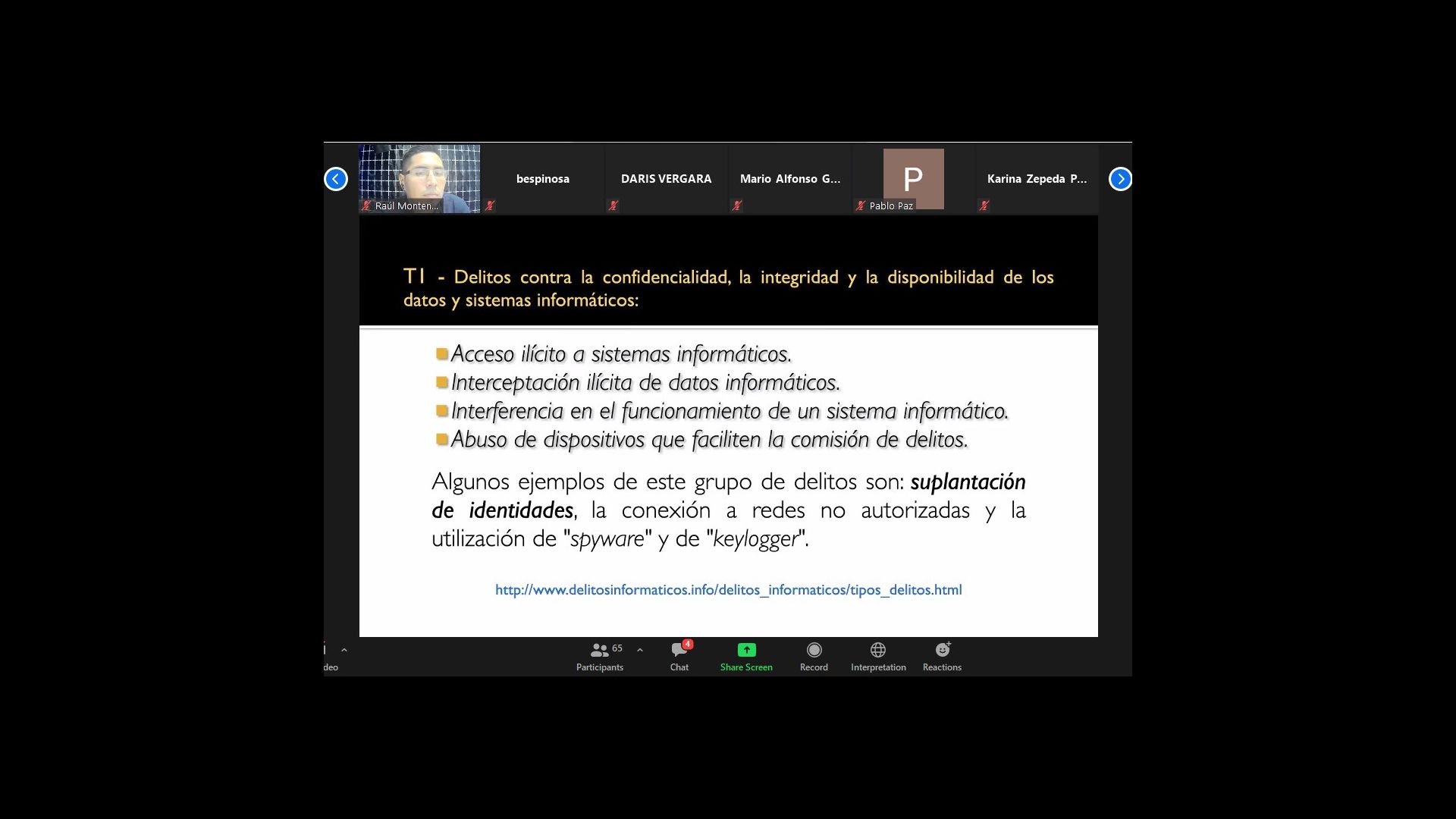 Dicho evento contó con la participaron de expositores de gama internacional, entre ellos, Anthony V. Teelucksingh, Fiscal Principal de la Sección de Crímenes Cibernéticos y Propiedad Intelectual del Departamento de Justicia de los Estados Unidos y Jefe de la mesa Cibernética REMJA de la Organización de los Estados Americanos, quien abordó las características principales del ciberdelito y sus principales modalidades; daños, intrusiones, fraudes, suplantación de identidad.