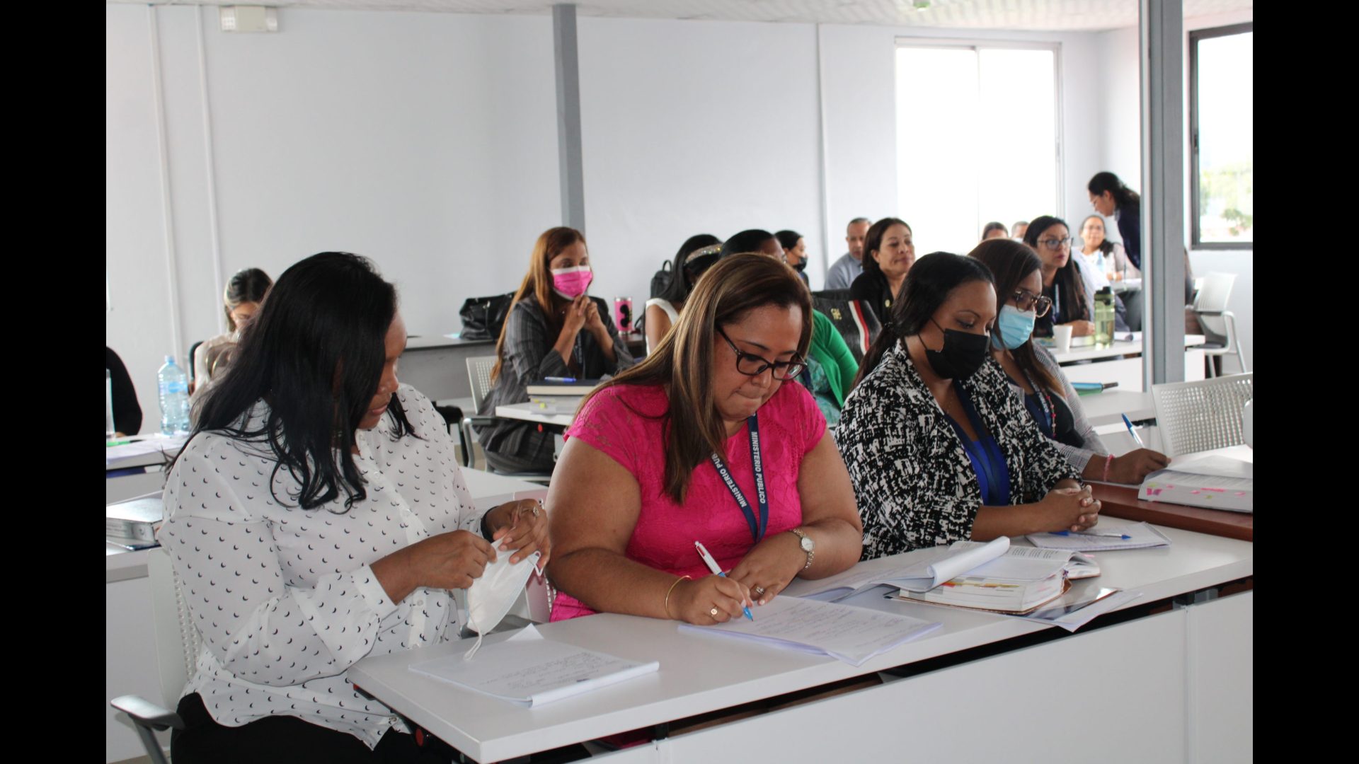 Fiscales de la Metropolitana, San Miguelito y Colón, escucharon de la voz de facilitadores institucionales de gran experiencia como la fiscal superior Janina Muñoz, el fiscal de circuito Víctor Barrios y la fiscal de circuito Elisa Arosemena, exposiciones acerca de los elementos, las estrategias y los fundamentos para la preparación y sustentación ante un Tribunal de estas tres audiencias que inician los procesos judiciales en el Sistema Penal Acusatorio.