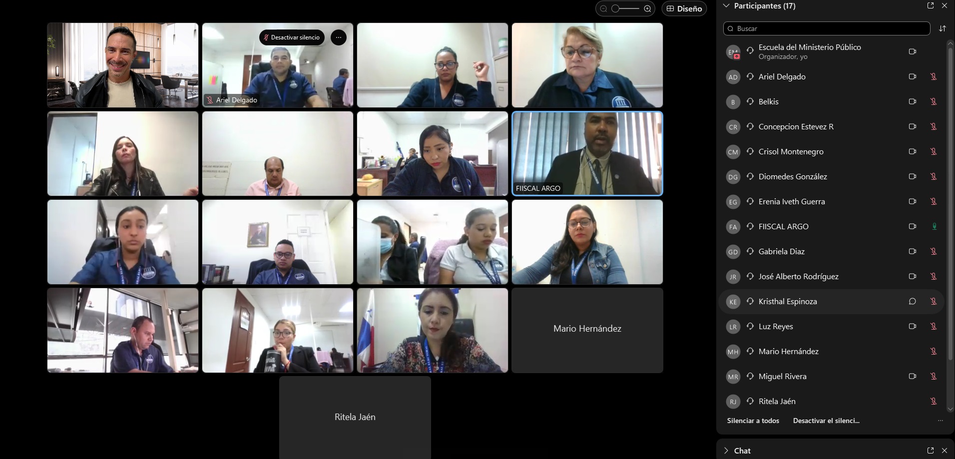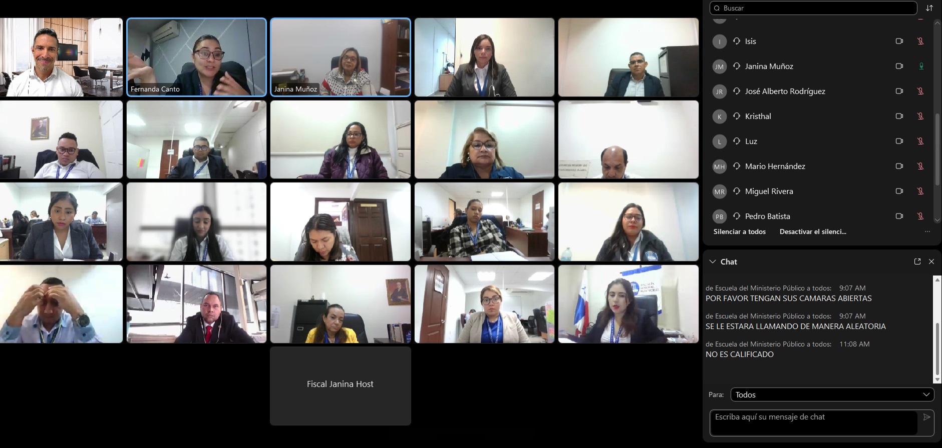 Entre los destacados docentes se encontraban la fiscal superior Janina Muñoz de Aparicio, de la Sección Primera de Delitos contra el Patrimonio Económico; Zulma Dip, fiscal superior de adolescentes de Colón y Guna Yala y el fiscal de circuito Argo Hyman, de la Sección de Juicio Oral.