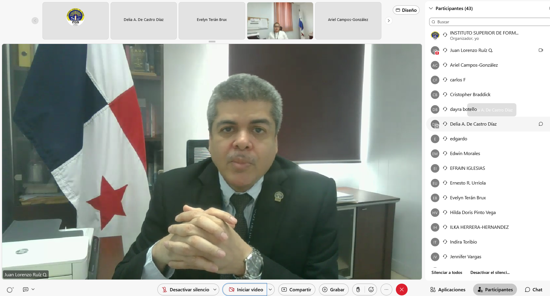 La jornada académica inició con las palabras de apertura a cargo de la Directora del Instituto Superior de Formación de Fiscales “Dra. Clara González de Behringer”, Licda. Delia De Castro, quien resaltó la importancia de estos espacios de actualización continua para el perfeccionamiento de la labor fiscal y la correcta aplicación de las disposiciones legales vigentes.