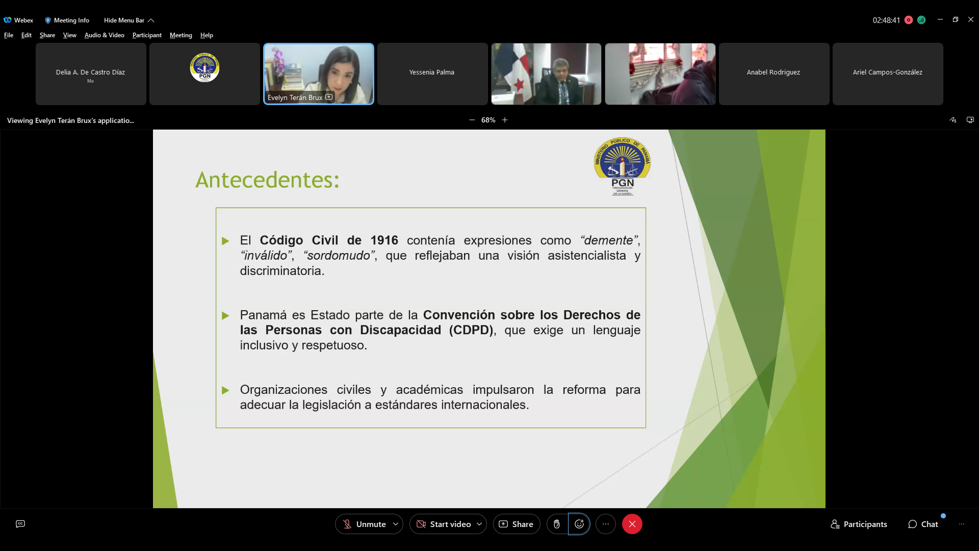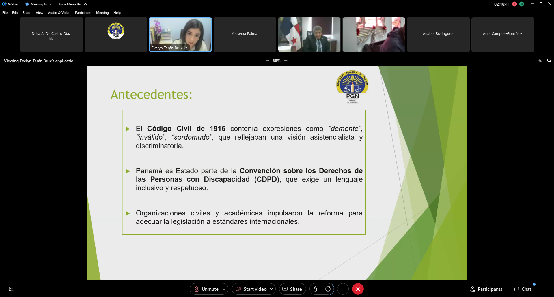 El foro culminó con la participación de la Fiscal de Circuito Evelyn Terán, quien abordó la “Eliminación de términos peyorativos en el Código Civil”, subrayando la necesidad de adecuar el lenguaje jurídico a los estándares actuales de derechos humanos y dignidad.