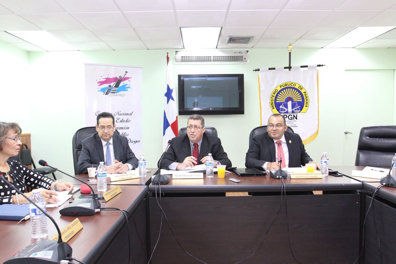 Los comisionados de la Comisión Nacional para el Estudio y la Prevención de los Delitos Relacionados con Droga (CONAPRED), que preside la Procuradora General de la nación, Kenia I. Porcell D., representada por el fiscal Julio Domínguez de la Sección de Decisión y Litigación Temprana, acompañado por el Secretario Ejecutivo de la CONAPRED, Abraham Herrera, se reunieron para atender diversos temas, entre ellos el Informe de Rendición de Cuentas del Proyecto Denominado: “Educación = Bienestar = Esperanza 2017 de Fundación PRIDE”.