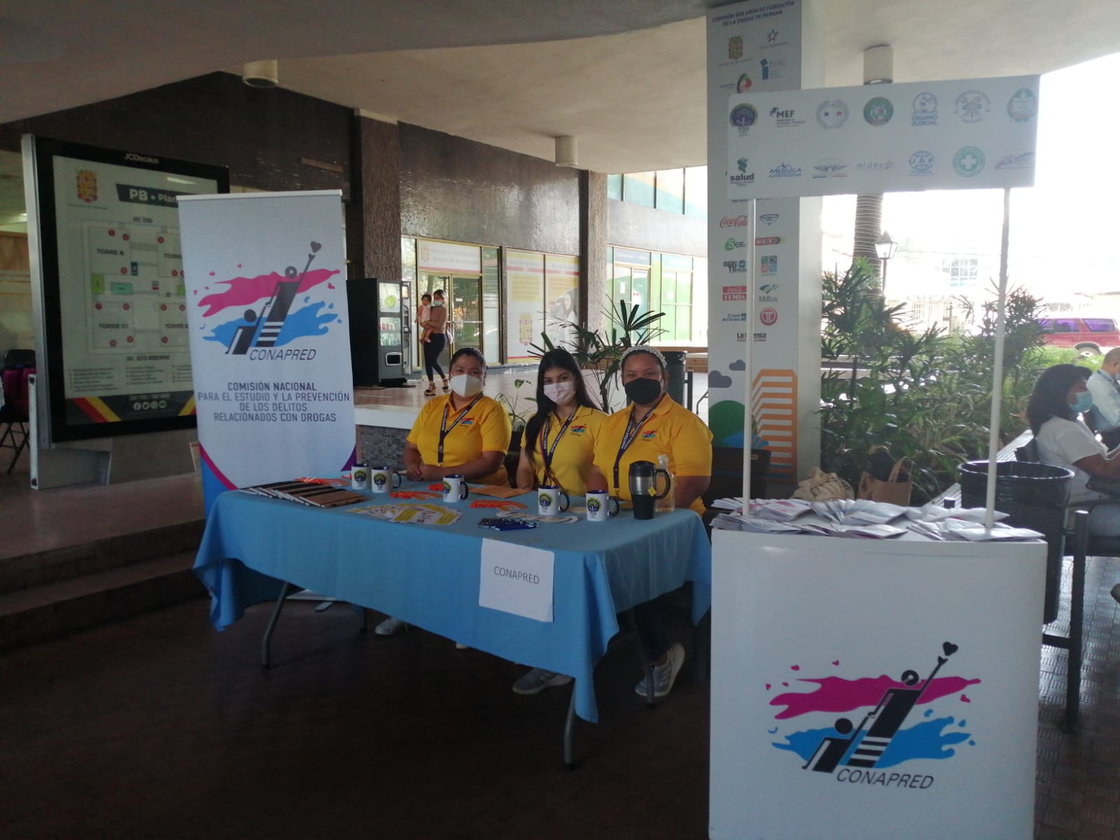 La Secretaría Ejecutiva de la Comisión Nacional para el Estudio y la Prevención de los Delitos Relacionados con Drogas (CONAPRED), participó de la feria de salud organizada por la sección de Salud Mental del Ministerio de Salud (MINSA). En este espacio de interacción se distribuyó material impreso con orientaciones al público en general para apoyar la salud mental, como: Manejo de Emociones, Habilidades para la Vida, entre otros temas. La Lcda. Jissel Maitín, Secretaría Ejecutiva de la CONAPRED, recibió en el stand a la Dra. Juana Herrera, Jefa Nacional de Salud Mental y a la Dra. Caroline Niles, Directora de Población de Salud Integral del MINSA.