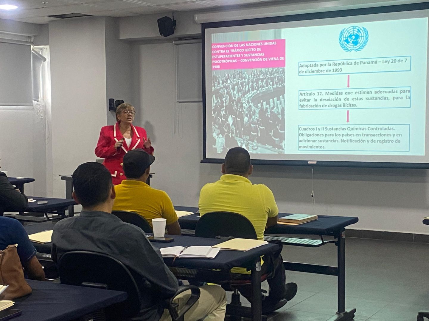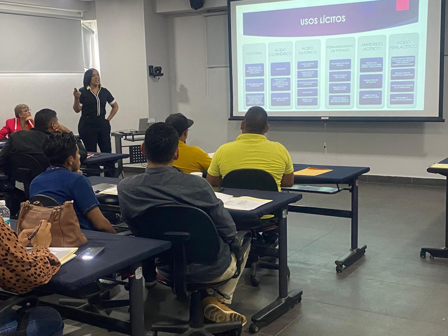 En seguimiento a reuniones realizadas este año 2024 con entidades que integran la Unidad de Control de Químicos (UCQ) de la Comisión Nacional para el Estudio y la Prevención de los Delitos Relacionados con Drogas (CONAPRED), se realizó una reunión de trabajo con 40 analistas de la Dirección Nacional Antidrogas de la Policía Nacional de Panamá.