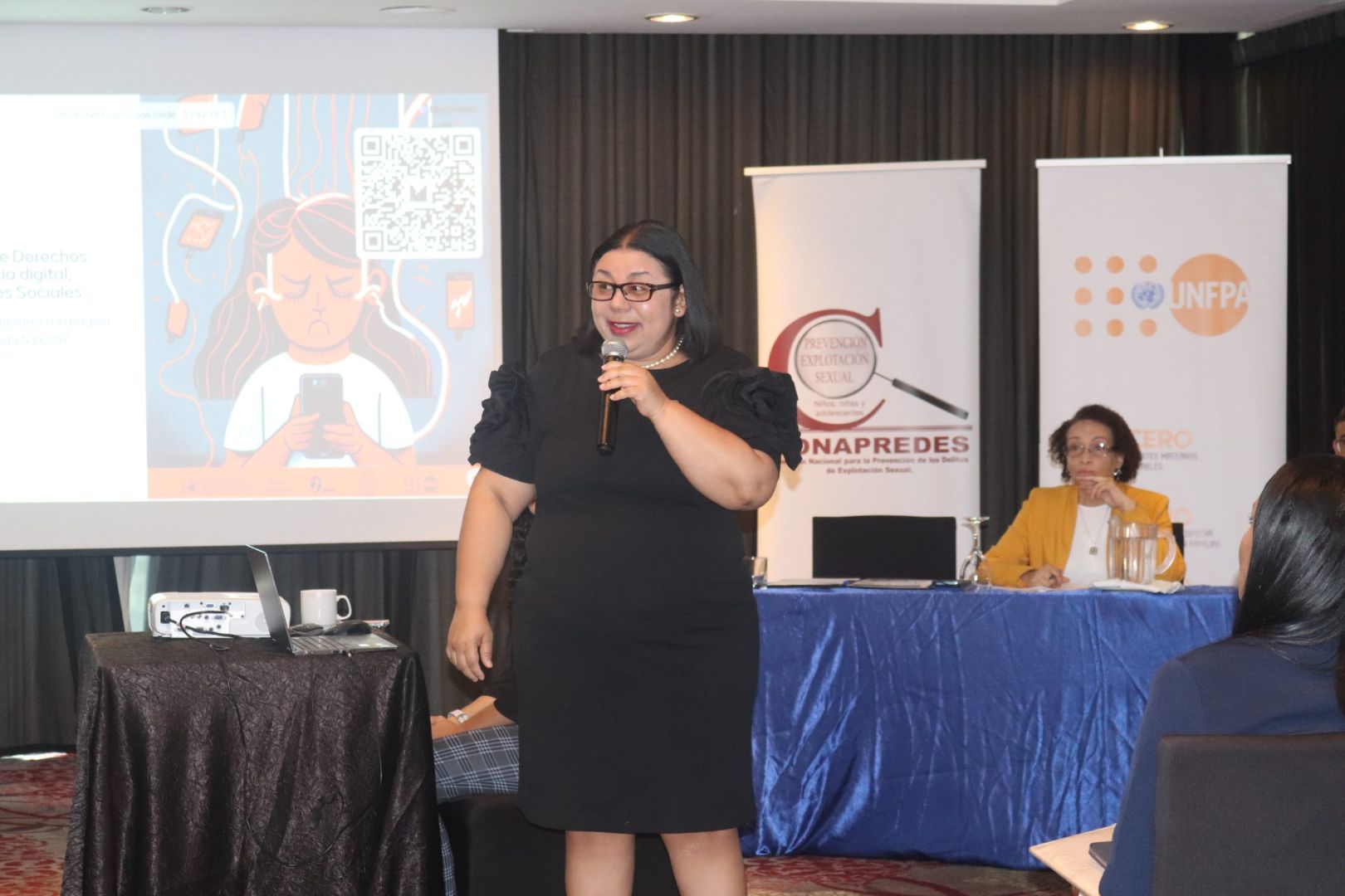 La Secretaria Ejecutiva de CONAPREDES, Dayra Dawson, panelista en el conversatorio abarcó el tema: “Redes sociales como factor de riesgo de explotación sexual” brindando a los participantes herramientas informativas y audiovisuales en base a cómo el uso incorrecto de las redes sociales puede influir de manera dañina a los jóvenes, ya que muchas personas les dan un uso negativo o inconveniente como el uso de la dark web (web oscura), dando lugar a que perpetradores las aprovechan para extorsionar, atacar y engañar, etc. convirtiéndose en un factor de riesgo de explotación sexual. A su vez, indicó recomendaciones para contrarrestar estos riesgos y darle buen uso de las redes sociales y del Internet.