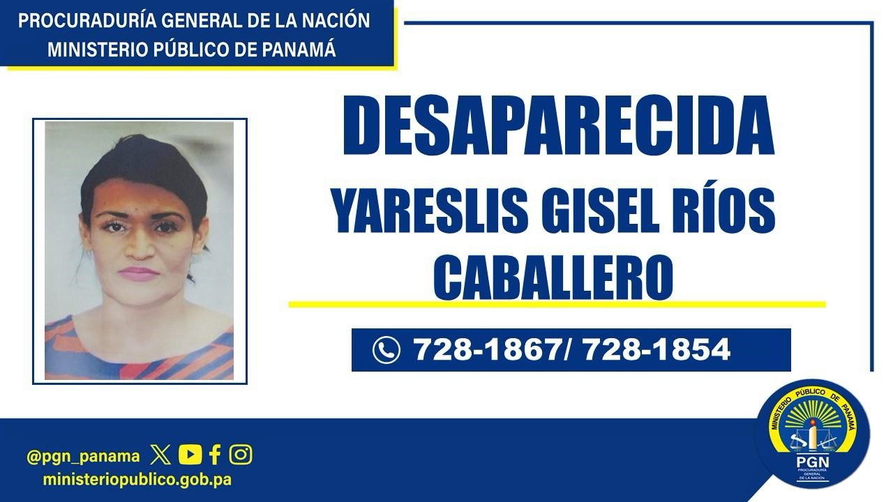 En Chiriquí, a través de la Personería Municipal de Boquerón, se inició una investigación por la desaparición de la ciudadana Yarelis Gisel Ríos Caballero, con cédula de identidad personal 4-722-1225, de la cual se desconoce su paradero desde el pasado mes de mayo del 2025.