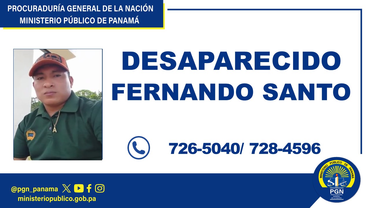 La Personería Municipal de San Lorenzo, en la provincia de Chiriquí, mantiene una investigación tras la desaparición del ciudadano Fernando Santo, de 43 años, quien fue visto por última vez el 31 de agosto de 2025.