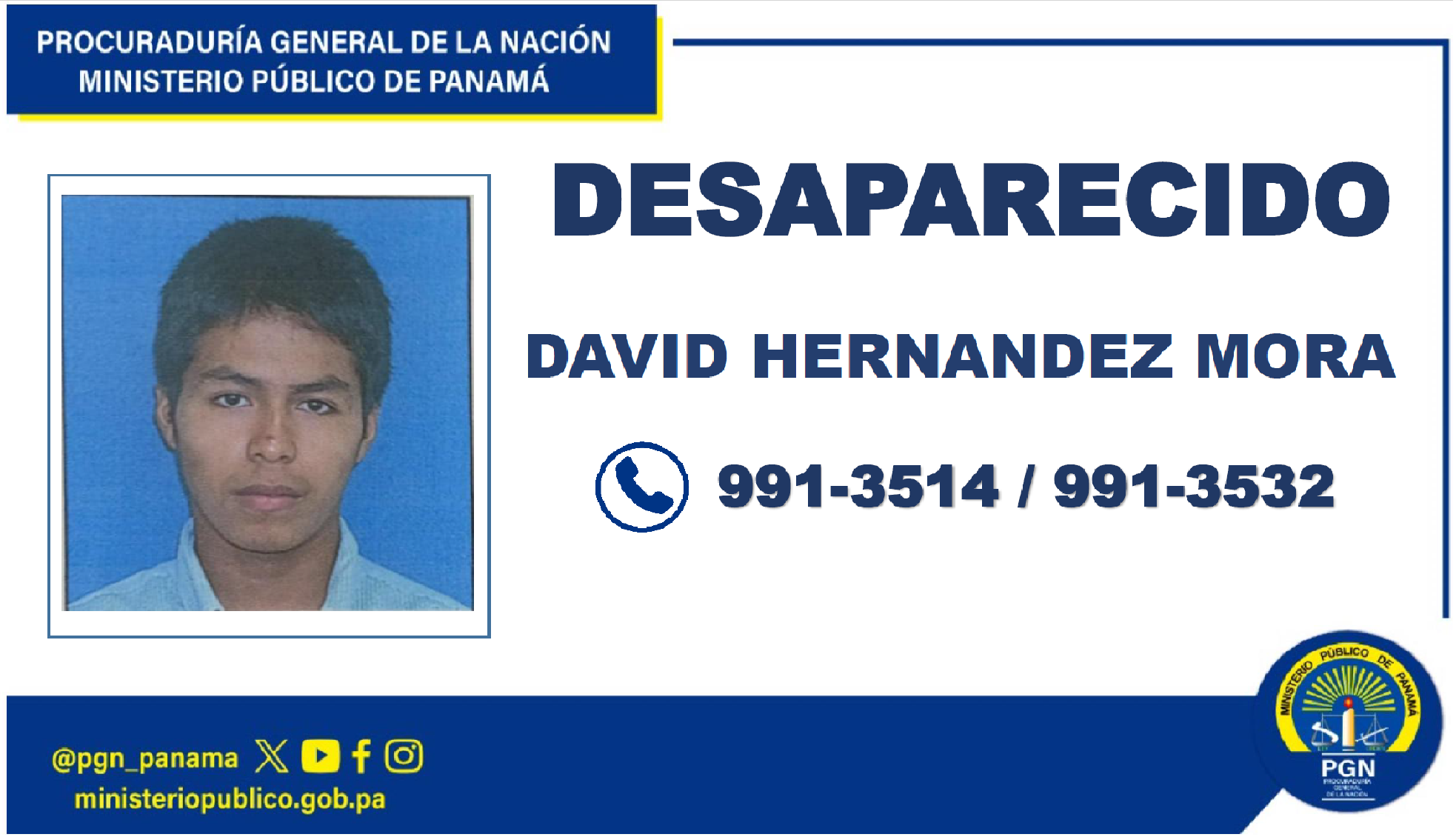 La Sección de Atención Primaria de la Fiscalía Regional de Coclé solicita colaboración a la ciudadanía para dar con el paradero de DAVID HERNÁNDEZ MORA con cédula de identidad personal 2-715-123, de 40 años de edad.