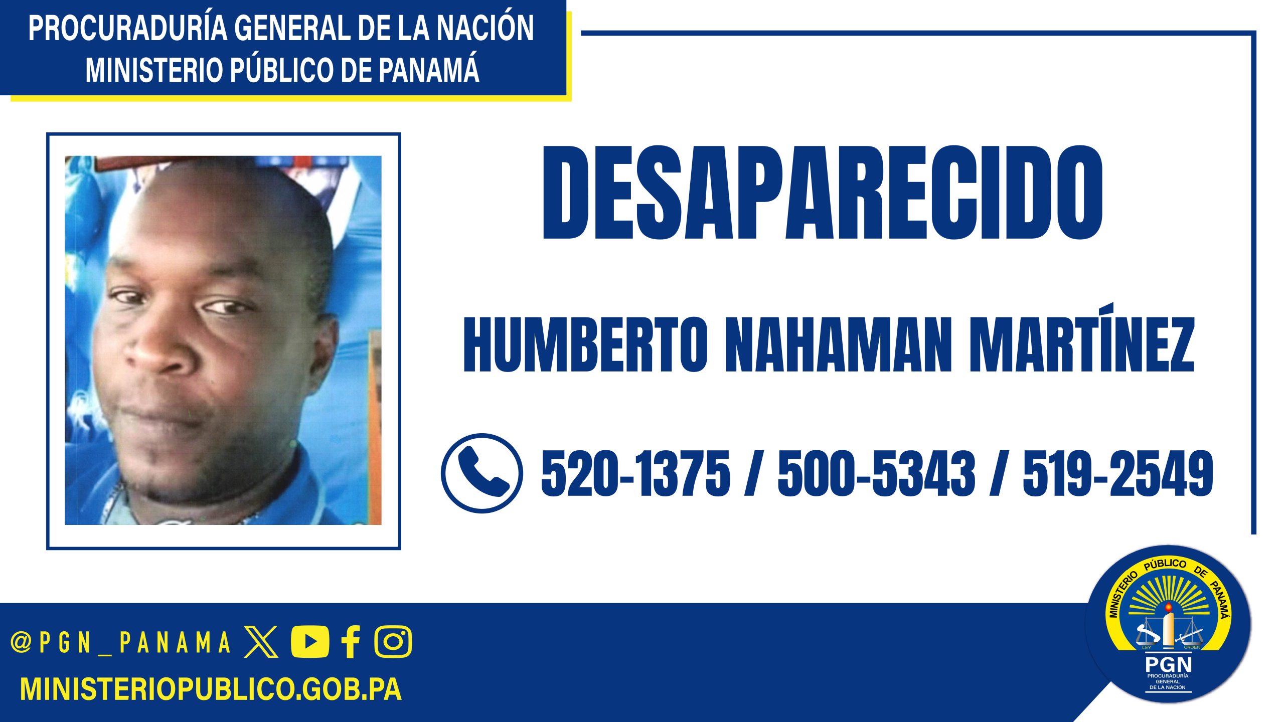 La Sección de Atención Primaria de la Octava Subregional (Tocumen y la 24 de Diciembre), inició una investigación por la presunta comisión del delito contra la vida y la integridad personal, en perjuicio de Humberto Nahaman Martínez, de 43 años de edad, quien se encuentra desaparecido desde el día 24 de diciembre de 2024.
