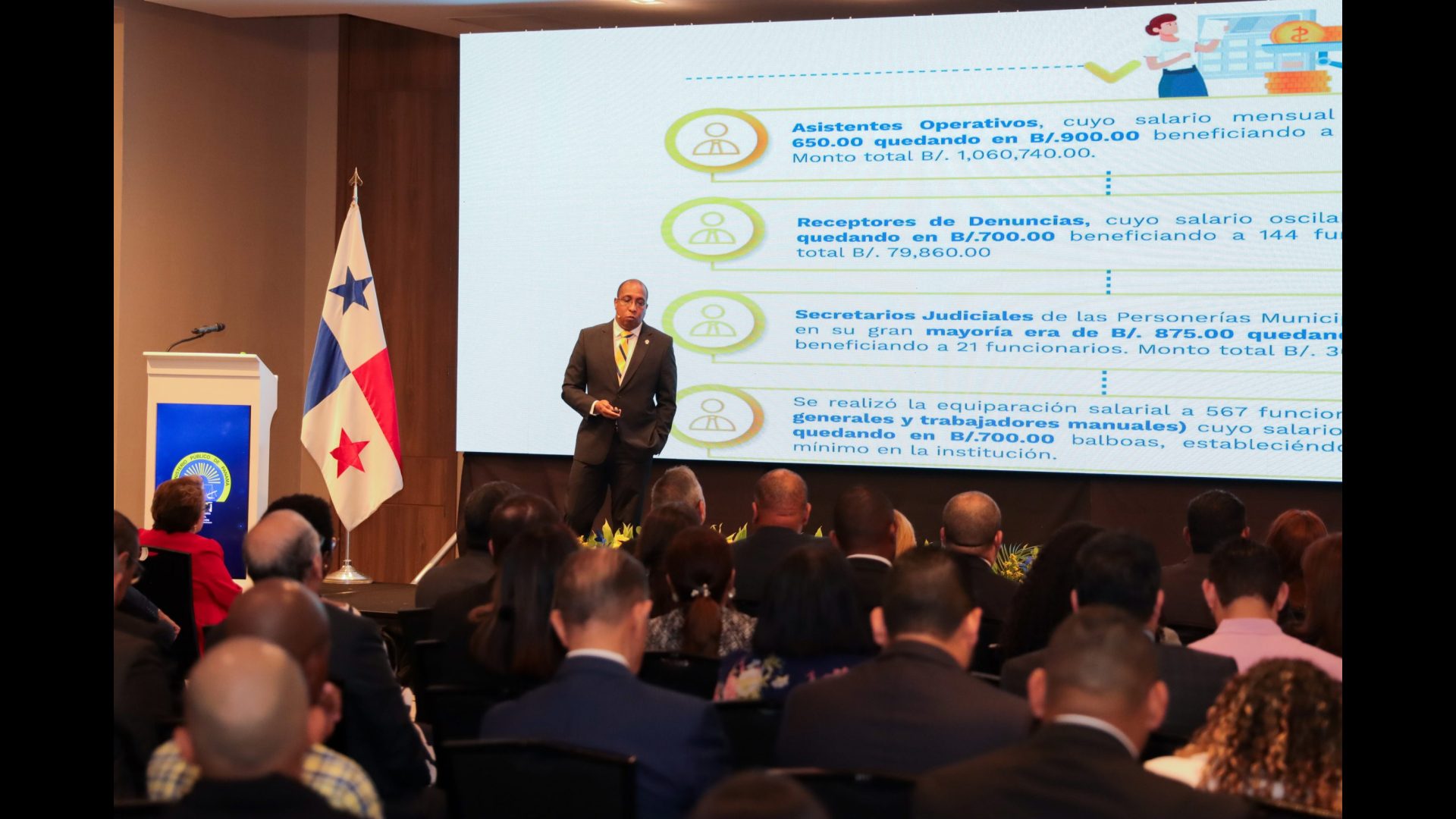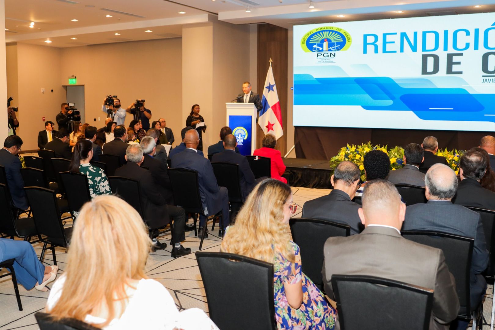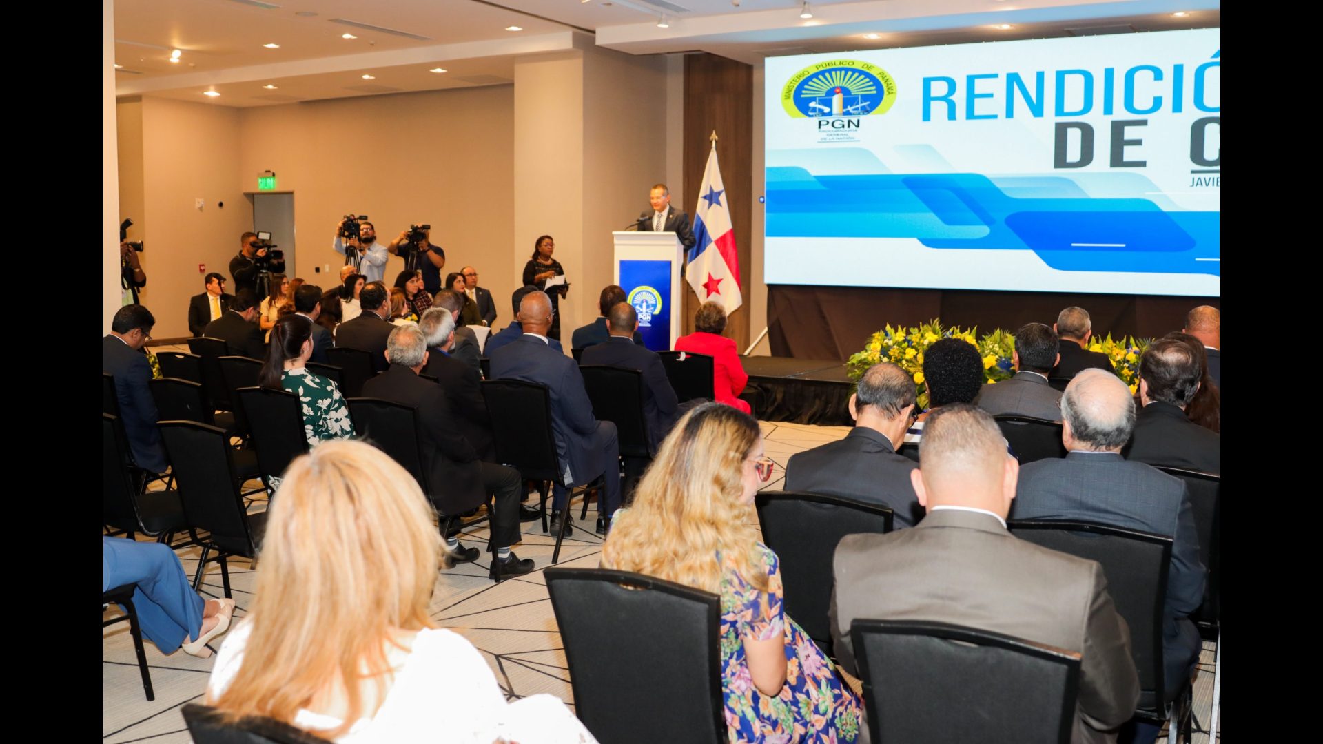 El Procurador General de la Nación, Javier Enrique Caraballo Salazar, presentó este miércoles, 27 de marzo de 2024, el Acto de Rendición de Cuentas (1 de marzo de 2023 al 29 de febrero de 2024), donde inició señalando que la institución cuenta con 5,489 funcionarios, siendo una de las pocas instituciones que están presentes en todo el territorio nacional, donde el 41.28% son hombres y 58.7 mujeres.