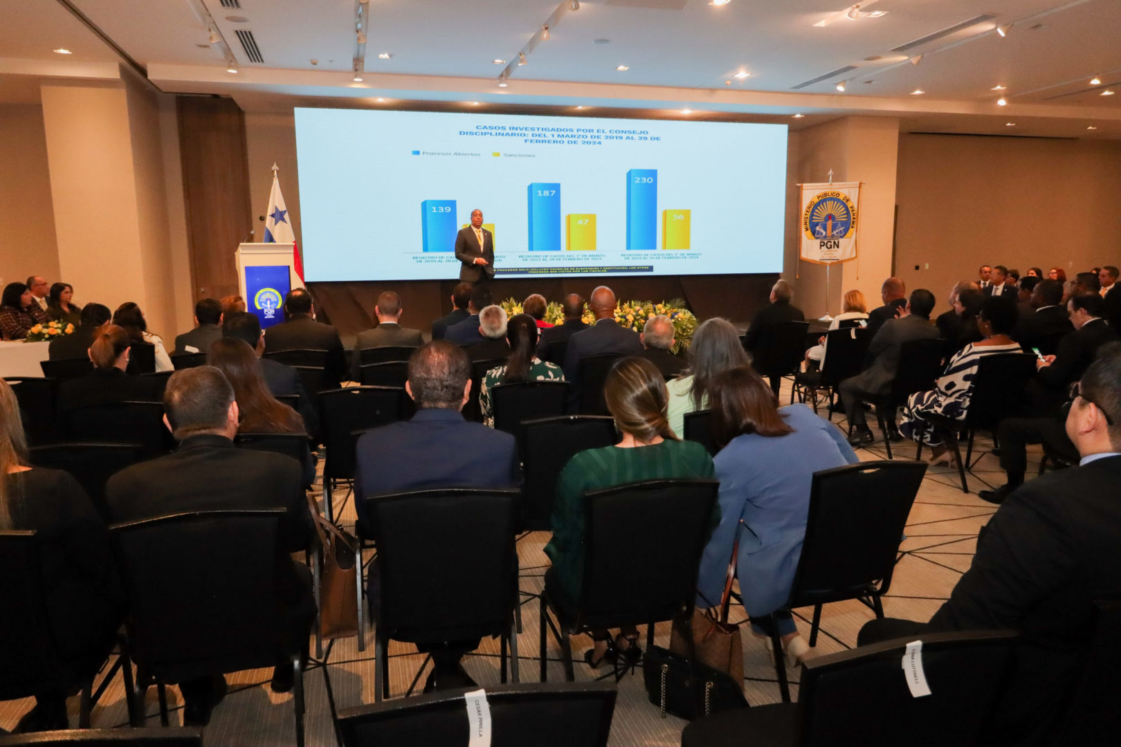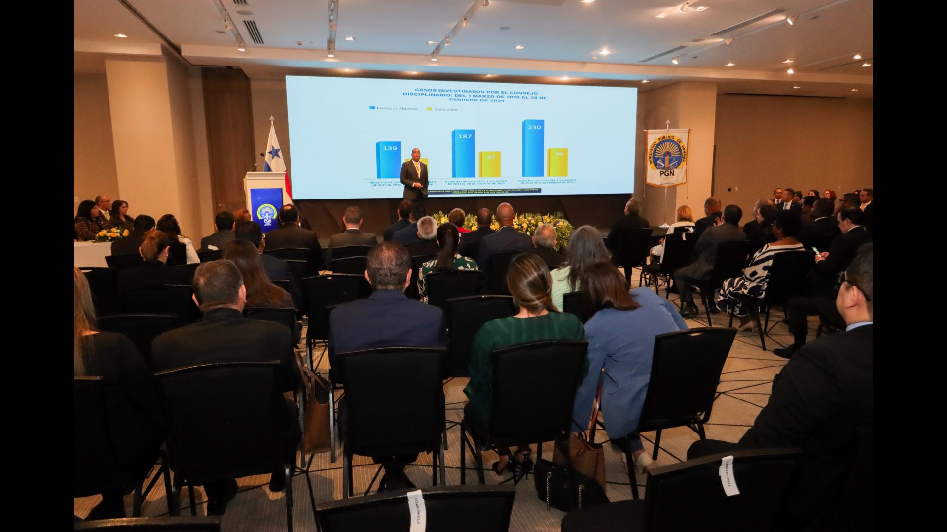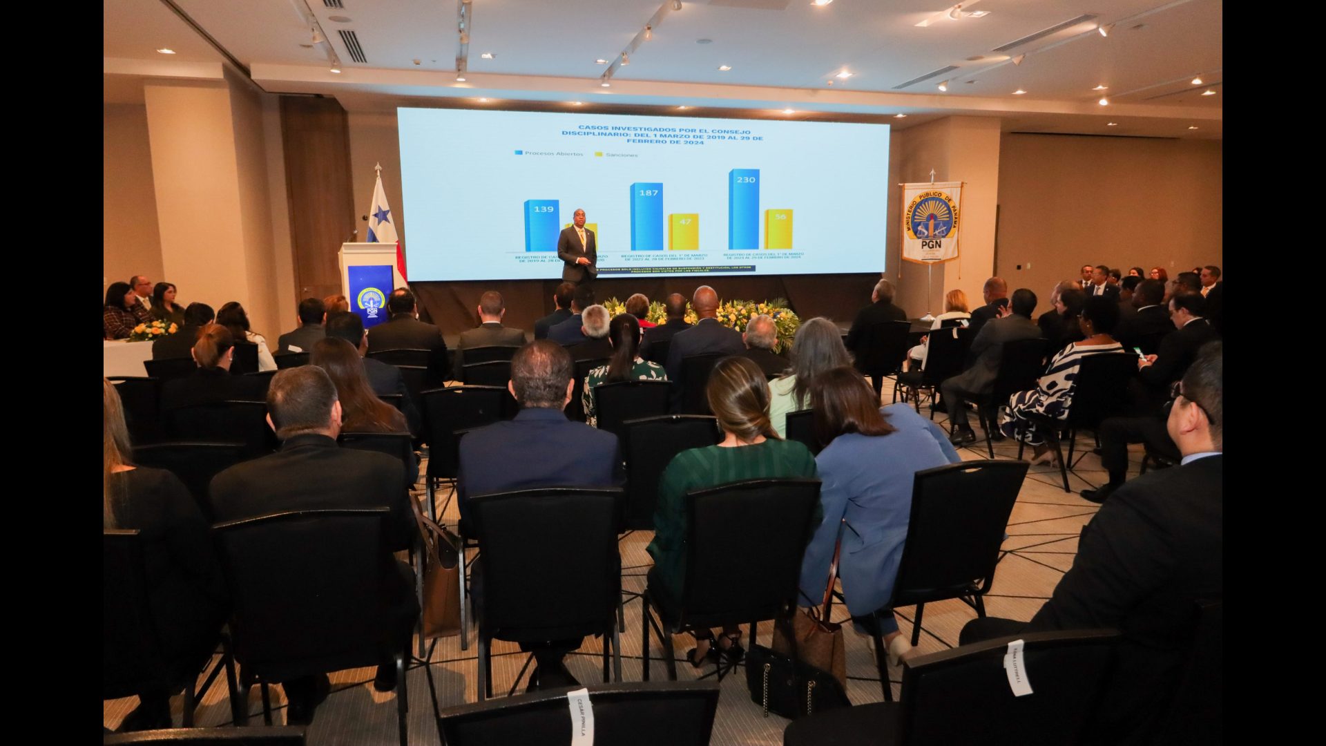 El Procurador General de la Nación, Javier Enrique Caraballo Salazar, presentó este miércoles, 27 de marzo de 2024, el Acto de Rendición de Cuentas (1 de marzo de 2023 al 29 de febrero de 2024), donde inició señalando que la institución cuenta con 5,489 funcionarios, siendo una de las pocas instituciones que están presentes en todo el territorio nacional, donde el 41.28% son hombres y 58.7 mujeres.