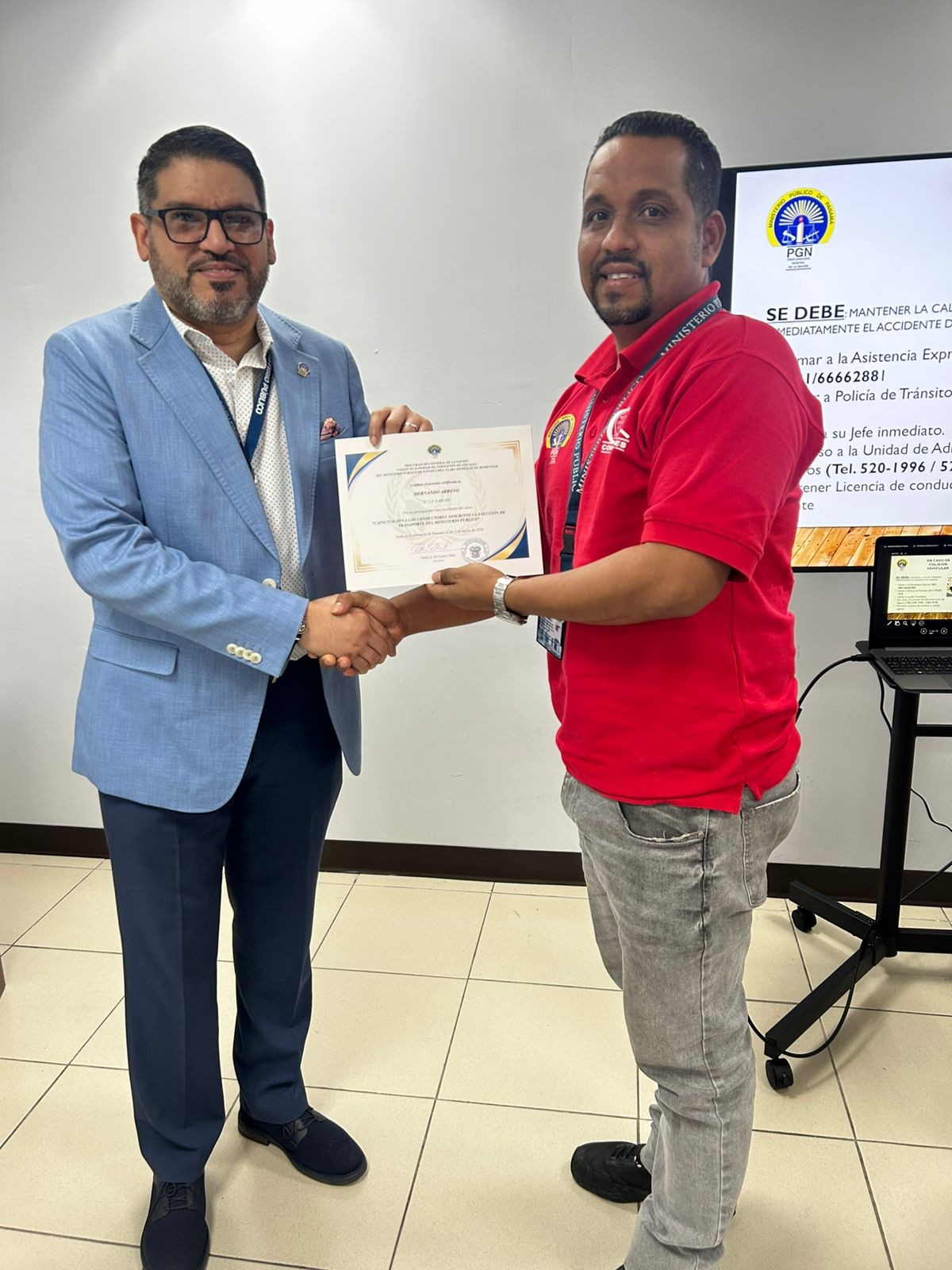 El jefe de la Sección de Transporte, Gilberto Duncan, agradeció al Instituto y a la Dirección de Recursos Humanos por la gestión para esta capacitación ya que la actualización en estos temas contribuye a la profesionalización de los conductores del Ministerio Público ofreciéndoles conocimientos y herramientas para desempeñar su labor con alto grado de eficiencia por lo cual animó a los asistentes a participar de forma activa, aclarar dudas y poner en práctica lo aprendido demostrando así su compromiso y responsabilidad en el manejo. La ocasión motivó la asistencia del licenciado Isaías Marcelino, director de Educación Vial y Defensa del Usuario de la (ATTT) quien compartió un ejemplar del Manual del conductor y animó a los conductores a seguir las normas de tránsito.
