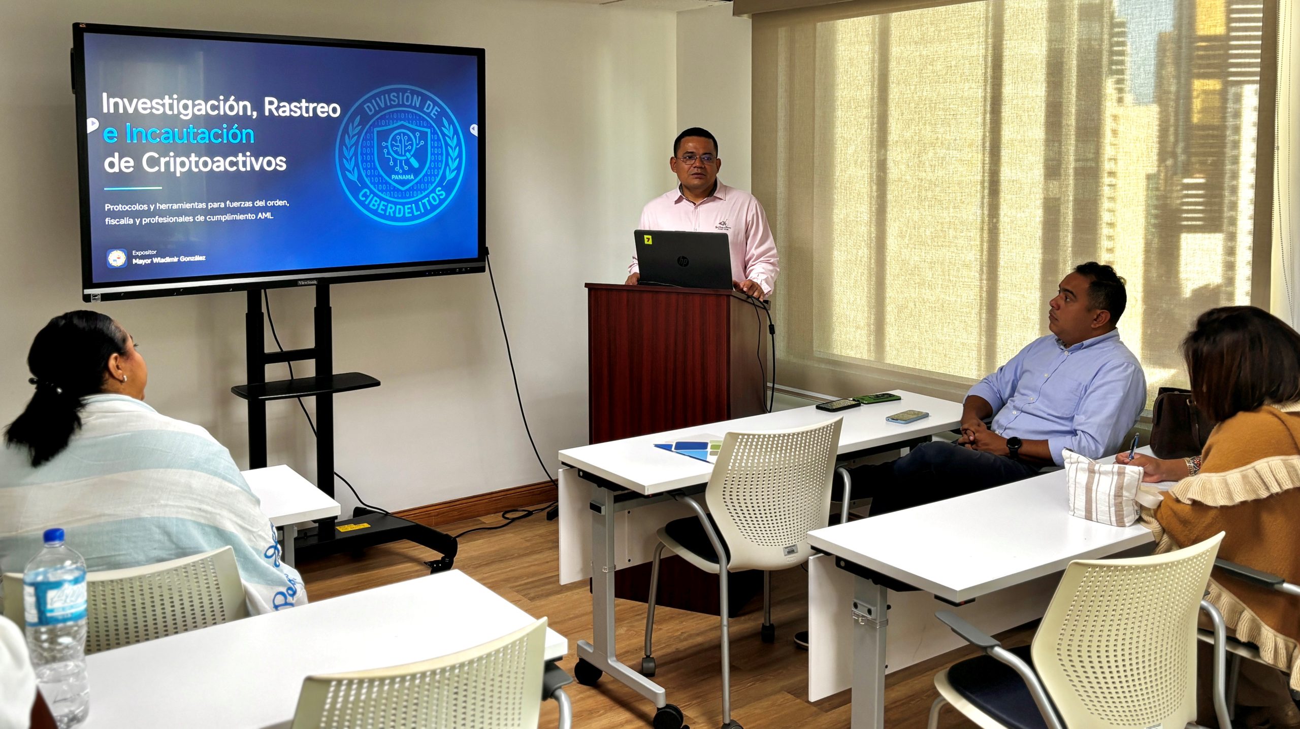 Complementaron esta capacitación, el fiscal Nino Gaitán, la ingeniera Aixa Ruíz, el mayor Wladimir González de la Unidad de Cibercrimen de la Dirección de Investigación Judicial (DIJ) de Panamá, Fernando Sánchez, perito de Informática Forense del Instituto de Medicina Legal y Ciencias Forenses (IMELCF), Dalys Ortega, jefa de la Unidad Especializada de Blanqueo de Capitales y Financiamiento del Terrorismo y Agustín Almario Fiscal de Circuito de la Fiscalía Especializada de Asuntos Internacionales, quienes desde sus especialidades, ilustraron a los participantes sobre la logística operacional entre instituciones, así como el abordaje investigativo para los delitos cometidos con Criptomonedas.