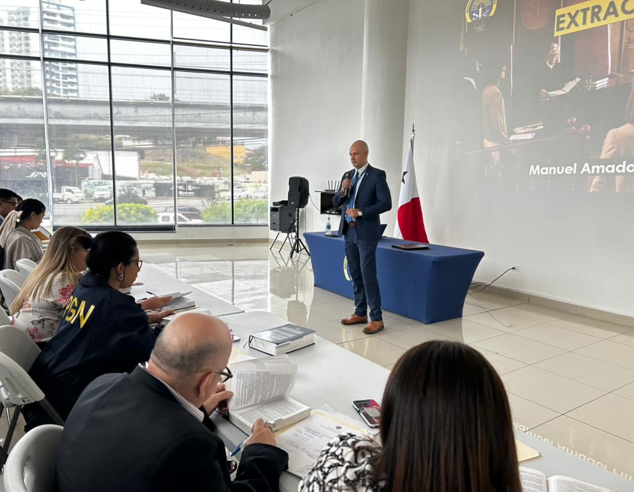 La jornada se distinguió por su enfoque especialmente práctico, contando con un cuerpo docente integrado por fiscales con amplia experiencia en litigación, entre ellos Argo Hyman, Yamileth Pimentel, Manuel Pitti, Frank Rodríguez, Adonis Marquínez, David Medina y Madeleine López, quienes compartieron casos reales y experiencias obtenidas en el desarrollo de juicios orales.