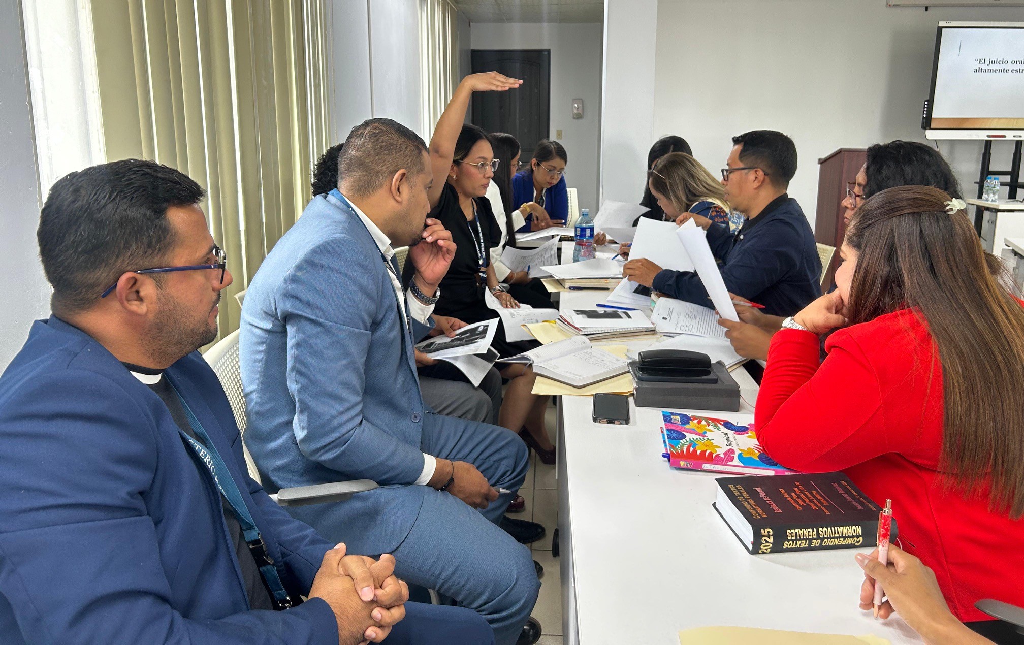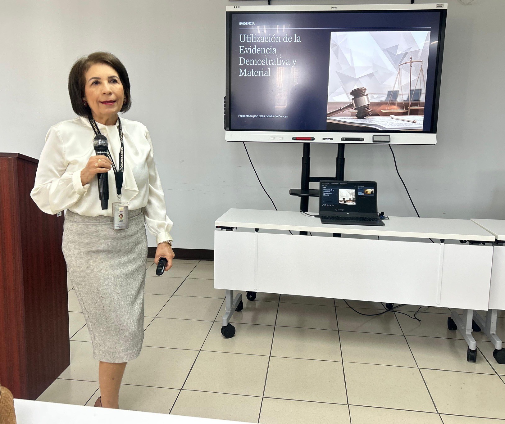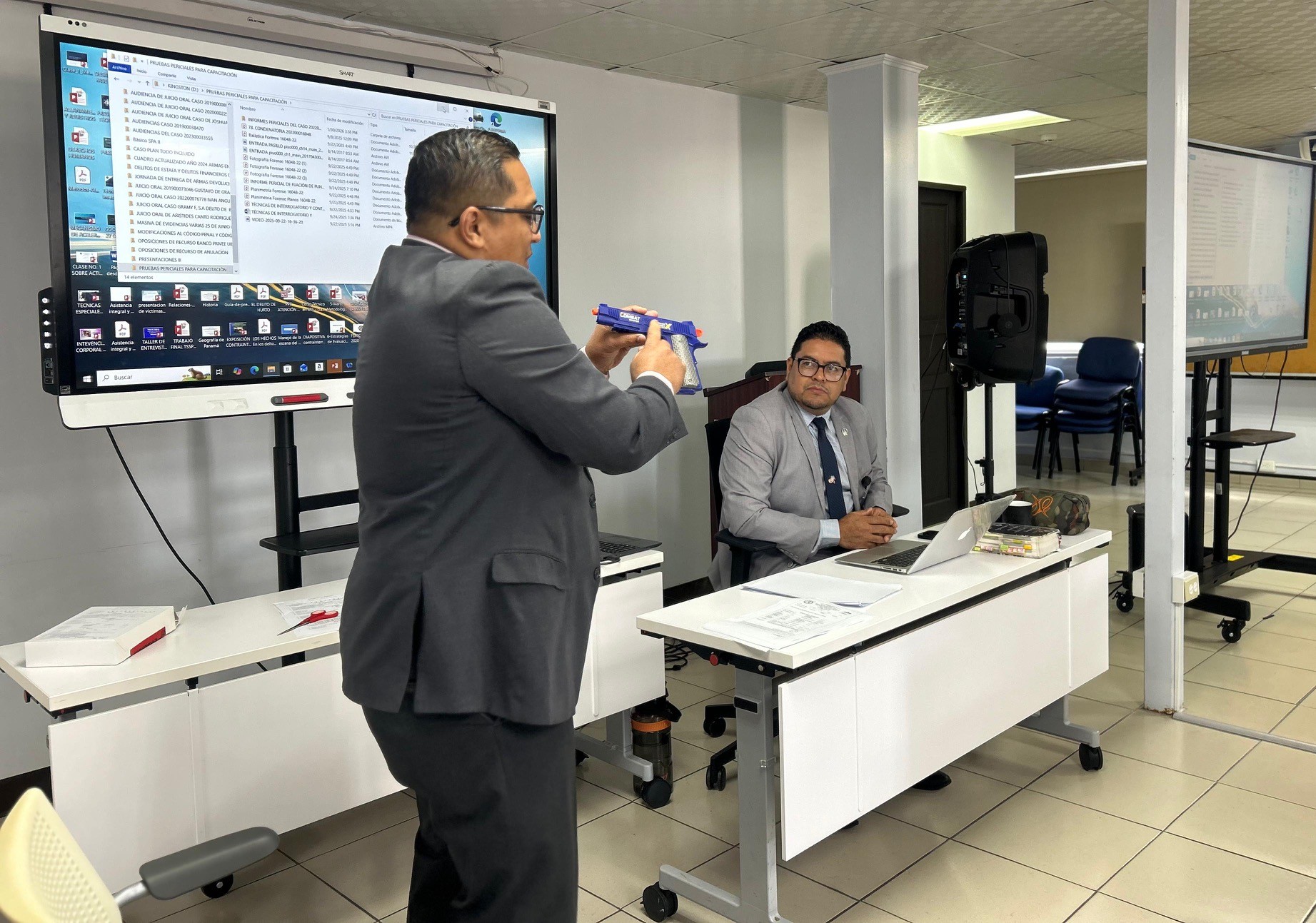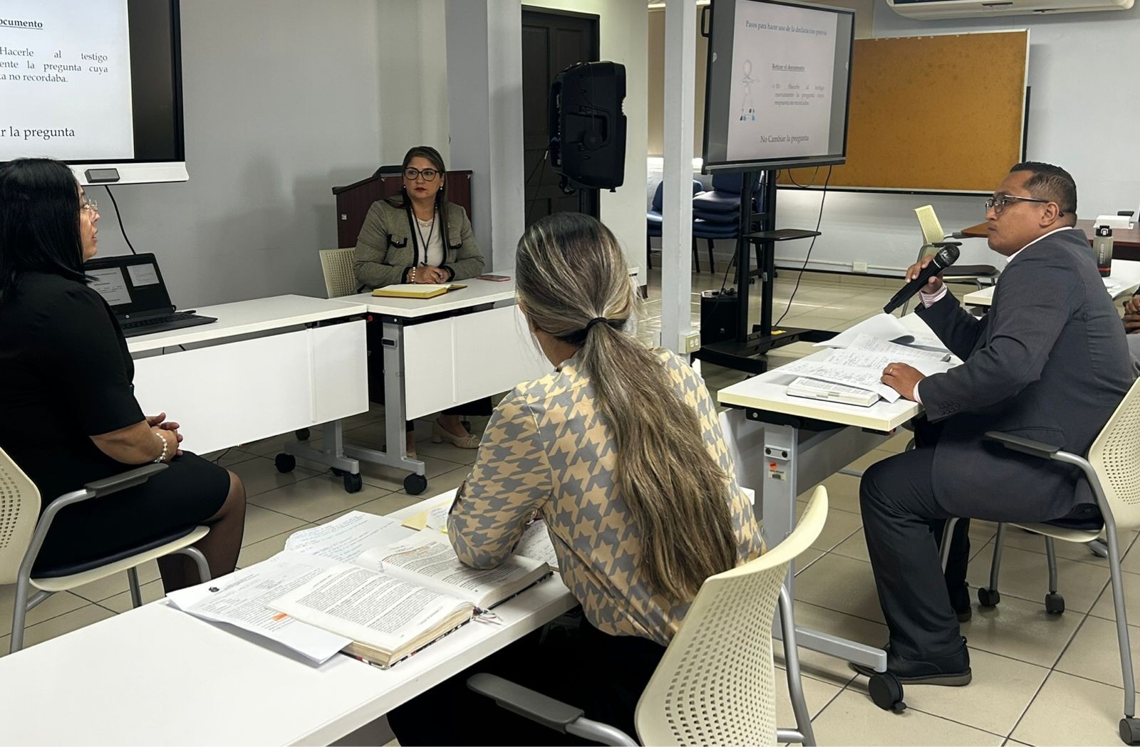 La capacitación fue impartida por los fiscales Yamileth Pimentel y Frederick Montero, quienes guiaron cada uno de los ejercicios prácticos. Un momento especialmente significativo fue la participación de los jueces Celia de Duncan y Roberto Sánchez, quienes aportaron su visión desde el estrado, fortaleciendo el intercambio de experiencias en el marco de la cooperación interinstitucional.