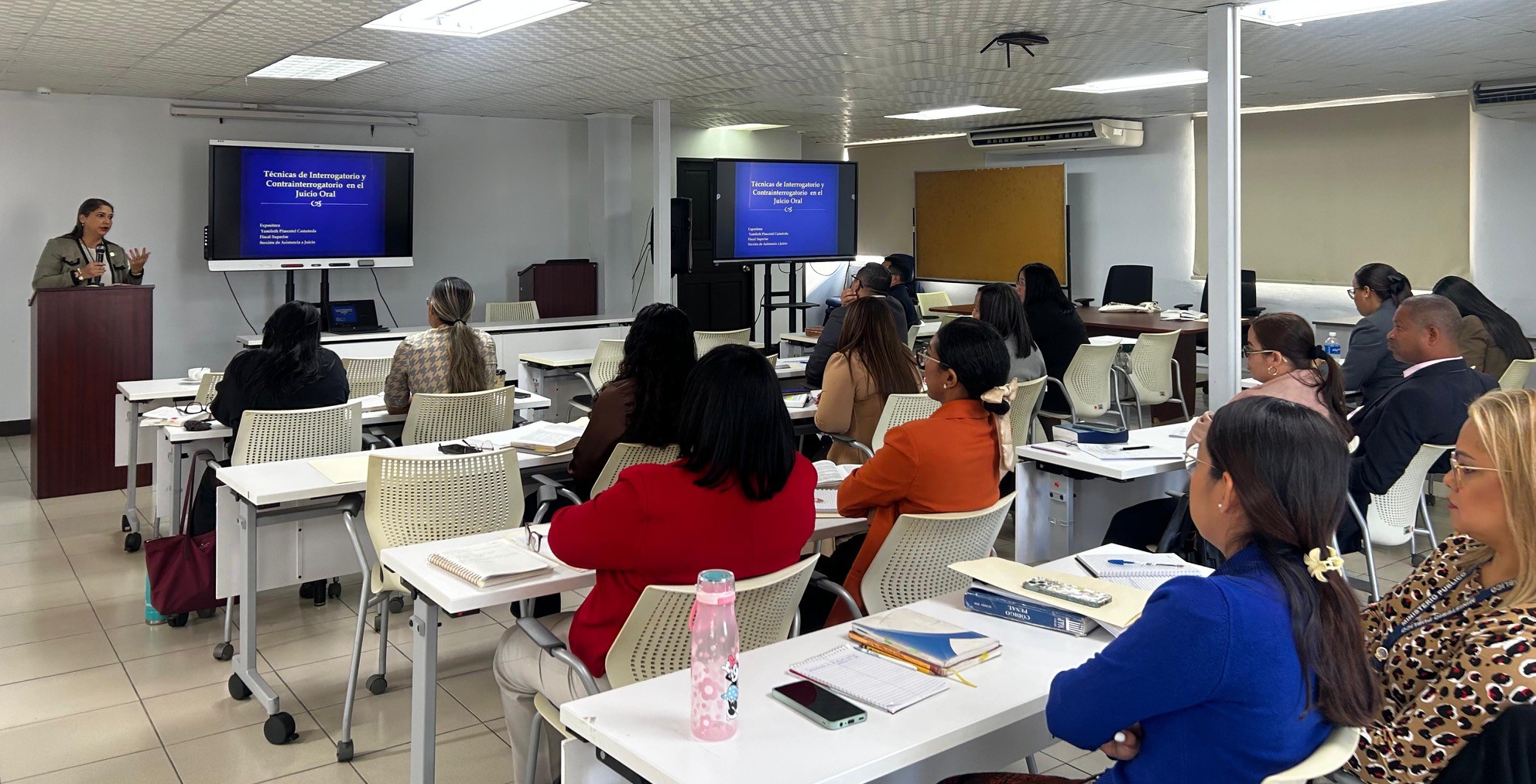 Durante el desarrollo de las jornadas también se abordaron aspectos fundamentales como el manejo de objeciones, las técnicas para refrescar la memoria del testigo, realizar aclaraciones, evidenciar contradicciones y utilizar correctamente las declaraciones previas dentro del proceso judicial.