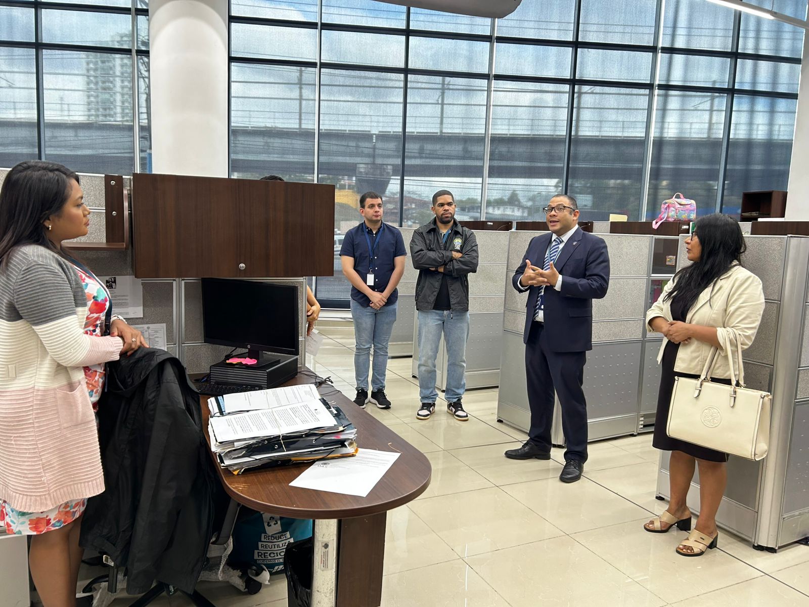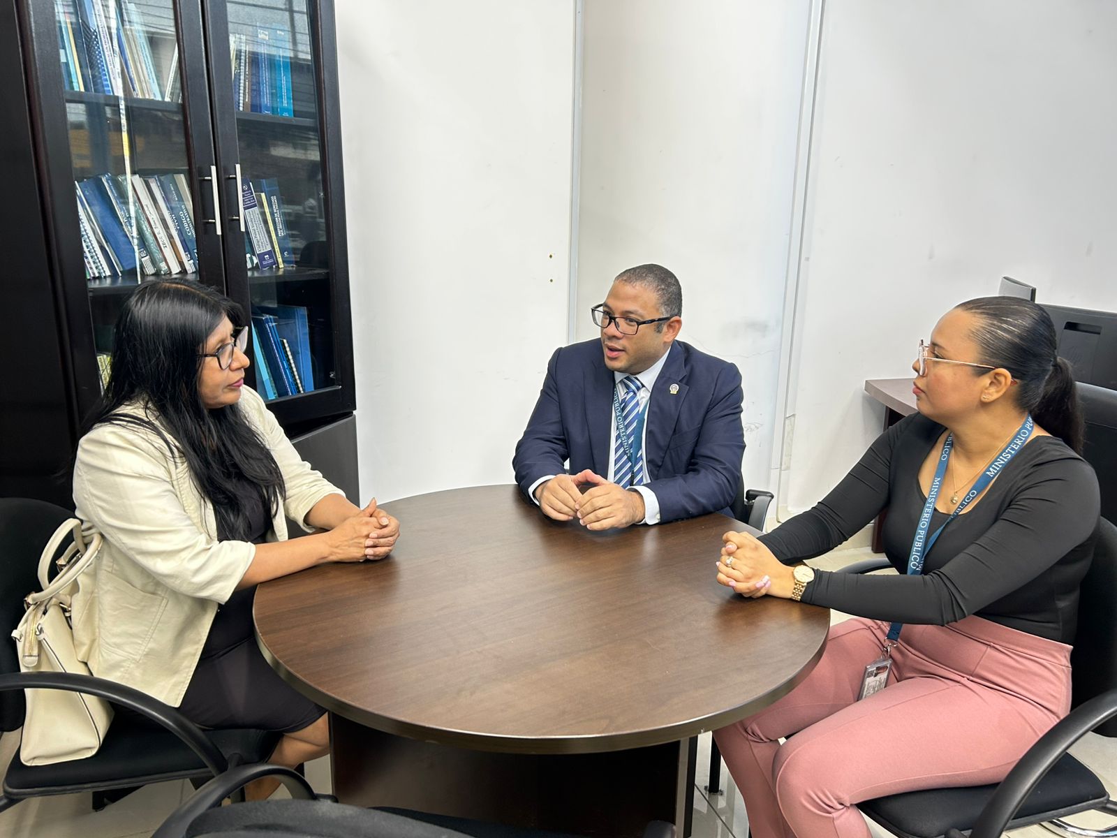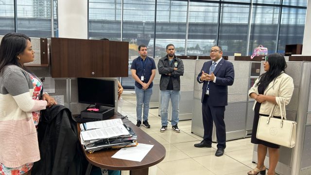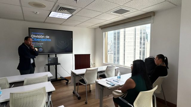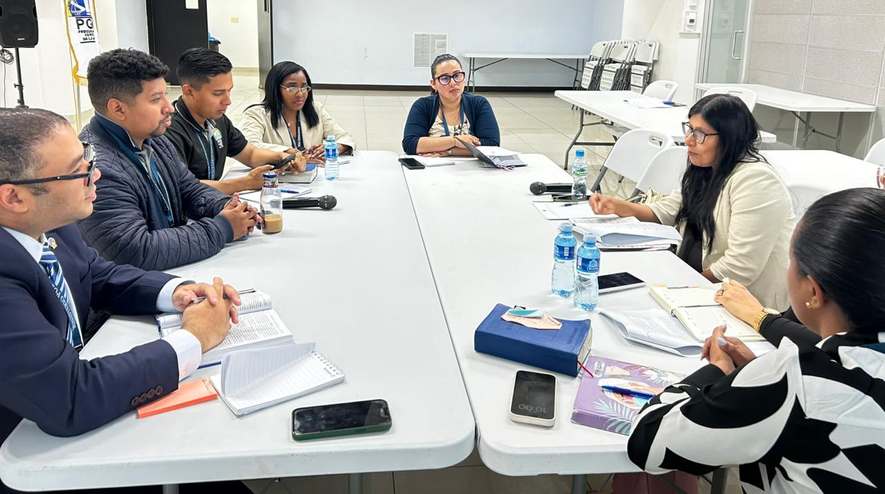 La fiscal Munayco inició su recorrido en el salón de reuniones de la Fiscalía Especializada en Delitos contra la Propiedad Intelectual y la Seguridad Informática donde fue recibida por el fiscal superior Igor Blanco y su equipo de trabajo. En este espacio, sostuvo mesas de trabajo en las que se abordaron temas como el marco regulatorio de los ciberdelitos en Panamá, los principales desafíos en la materia, los delitos contra la seguridad jurídica de los medios electrónicos y otros delitos cometidos a través de medios cibernéticos y las novedades introducidas por la Ley 478 de 2025.