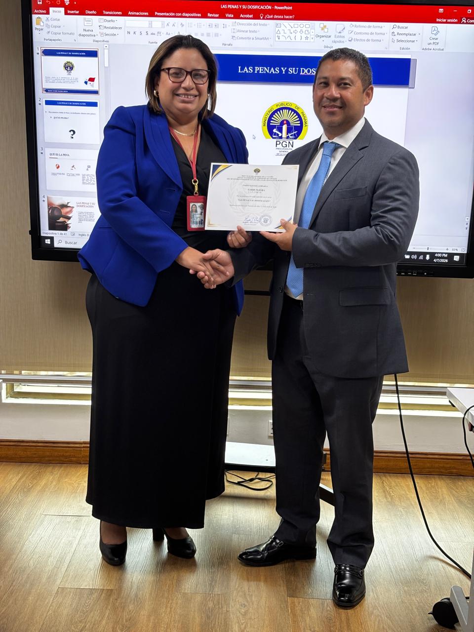 La jornada contó con la participación de destacados facilitadores del Ministerio Público y del Órgano Judicial, quienes, desde su amplia experiencia en materia penal, compartieron conocimientos especializados y herramientas prácticas para la adecuada aplicación de los criterios de individualización de la pena. Por parte del Ministerio Público, participaron los fiscales Noel Felipe Rodríguez, Otilia González, José Mojica. En representación del Órgano Judicial, intervino el Magistrado del Tribunal Superior de Apelaciones, Samir Tejeira, del Segundo Distrito Judicial.