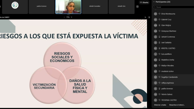 El cierre de la jornada estuvo a cargo de la psicóloga Zabdy González, de la Unidad de Protección a Víctimas, Testigos, Peritos y demás Intervinientes (UPAVIT), quien destacó el rol de los servicios de UPAVIT y SEPROVIT. Hizo especial énfasis en el uso de la Cámara Gesell como mecanismo de anticipo de prueba, diseñado para proteger la integridad de menores y víctimas de delitos sexuales, evitando así la revictimización.