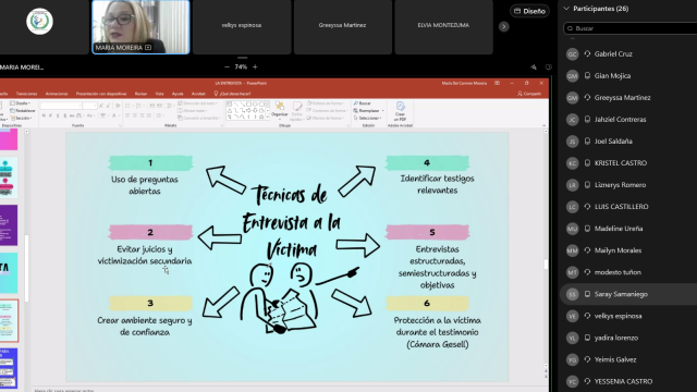 El Instituto Superior de Formación de Fiscales del Ministerio Público Dra. Clara González de Behringer, con el objetivo de optimizar la respuesta institucional desde el primer contacto con la ciudadanía realizó, del 24 al 27 de febrero de 2026, la jornada académica virtual: Recepción de Denuncia y Técnicas de Entrevista. La capacitación estuvo dirigida a 23 receptores de primer ingreso de las Secciones de Atención Primaria a nivel nacional.