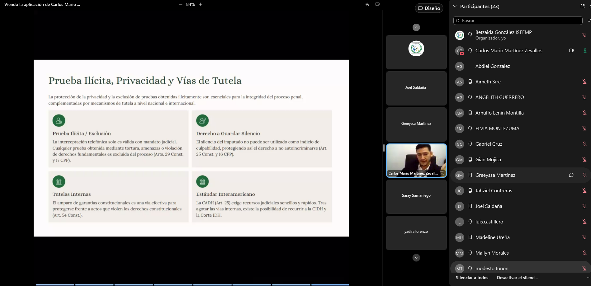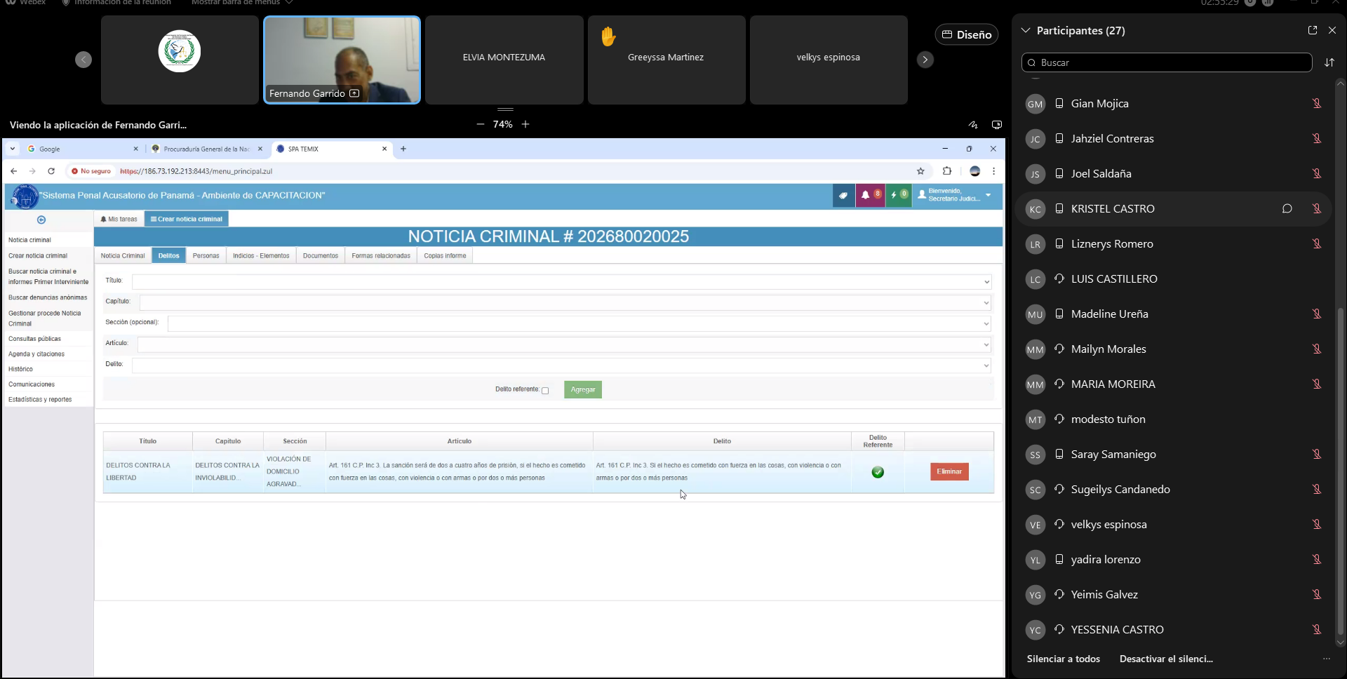 Por su parte, la fiscal Itziar Martínez profundizó en las actuaciones iniciales, definiéndolas como las diligencias urgentes para verificar la veracidad de los hechos e individualizar a los responsables. En el ámbito tecnológico, el Ingeniero Fernando Garrido instruyó a los participantes en el manejo práctico de la Plataforma del Sistema Penal Acusatorio (SPA) bajo un entorno de modo de prueba.