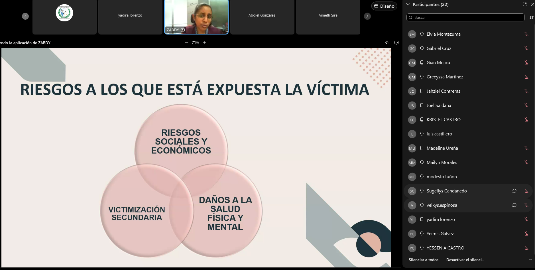El cierre de la jornada estuvo a cargo de la psicóloga Zabdy González, de la Unidad de Protección a Víctimas, Testigos, Peritos y demás Intervinientes (UPAVIT), quien destacó el rol de los servicios de UPAVIT y SEPROVIT. Hizo especial énfasis en el uso de la Cámara Gesell como mecanismo de anticipo de prueba, diseñado para proteger la integridad de menores y víctimas de delitos sexuales, evitando así la revictimización.