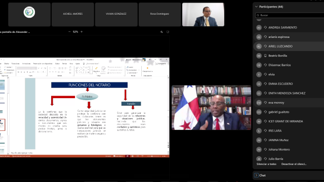 Seguido de ello, el licenciado Luis Sánchez, gerente de Prevención Fiduciaria de la Superintendencia de Bancos, ofreció una exposición sobre el fideicomiso y sus particularidades. Por su parte, el licenciado Alexander Valencia abordó el funcionamiento de la actividad notarial, Para cerrar la jornada, los licenciados Omar Castillo y Jean Rivera, de la Sección de Firma Electrónica del Registro Público, habló sobre la regulación de la firma electrónica en Panamá, destacando avances, desafíos y buenas prácticas.