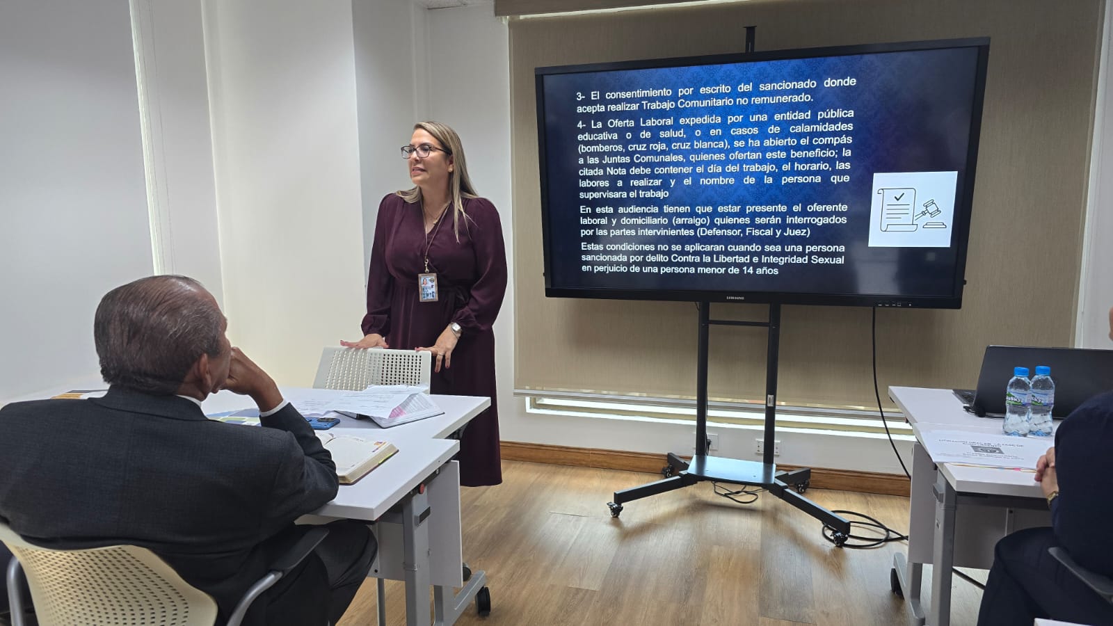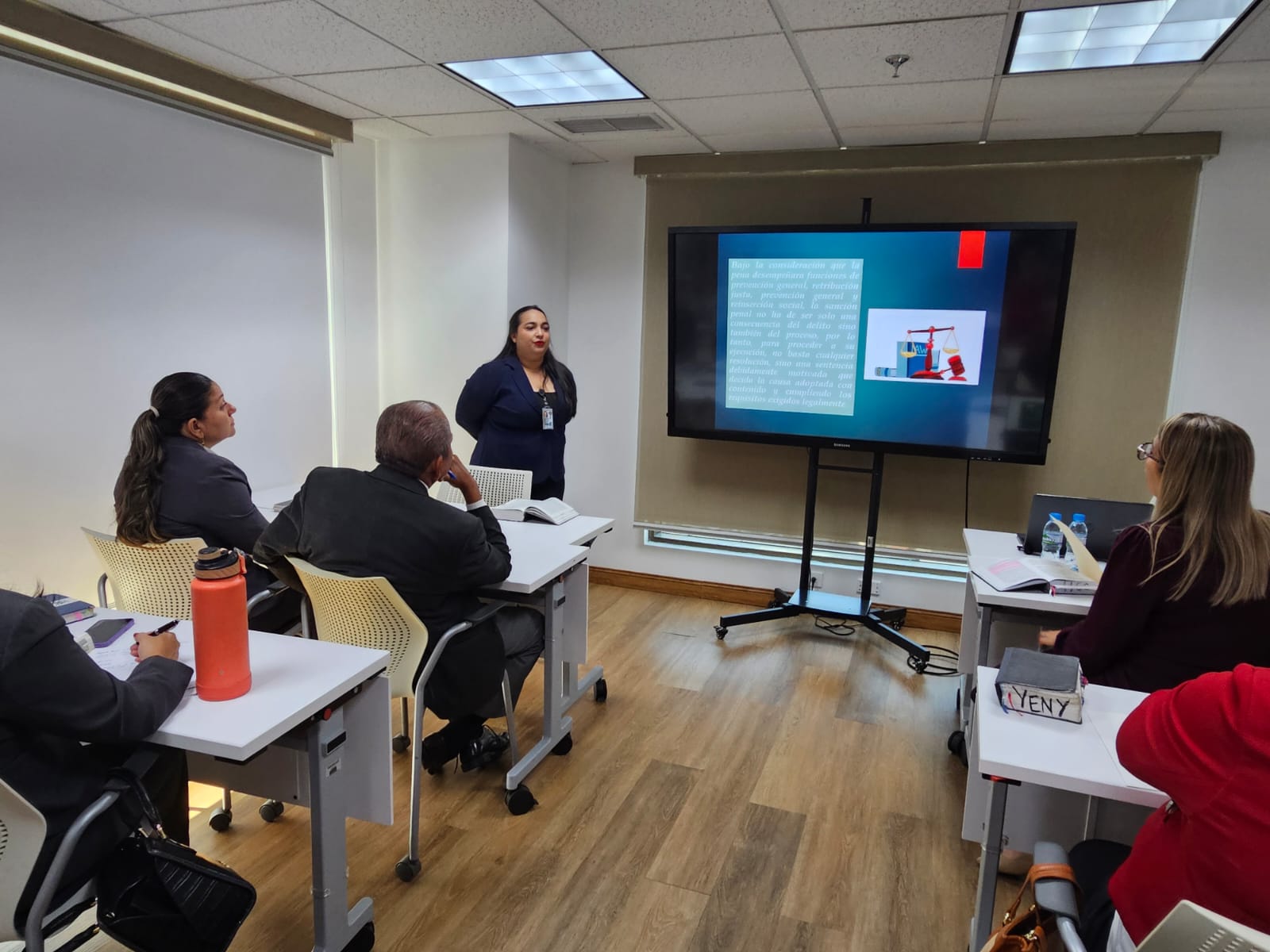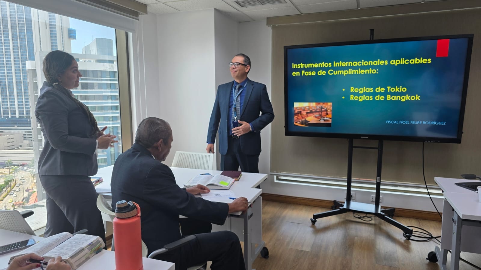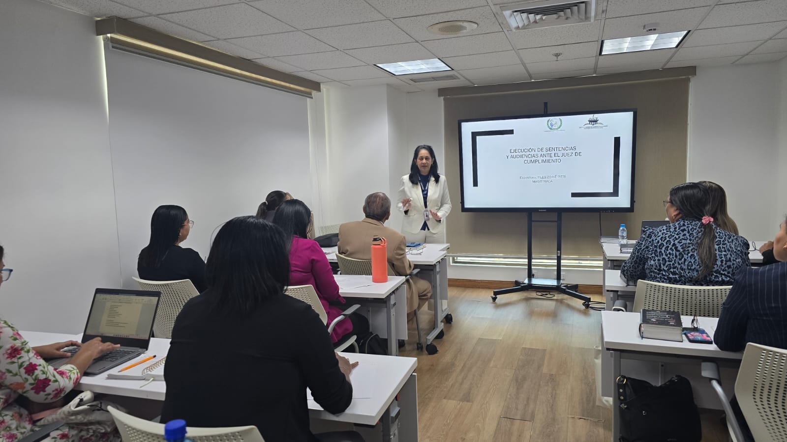 Durante los cuatro días de capacitación se abordaron contenidos de alta relevancia jurídica y operativa, entre ellos: el rol del fiscal en la fase de cumplimiento y el mapa de audiencias; los instrumentos internacionales aplicables, como las Reglas de Bangkok y las Reglas de Tokio; así como las solicitudes de audiencias relacionadas con prisión domiciliaria, sustitución o aplazamiento de la ejecución de la pena principal, suspensión condicional de la ejecución de la pena, reemplazo de penas cortas, trabajo comunitario, suspensión condicional del proceso, ejecución de sentencias, reconocimiento de tiempo, cómputo de pena, conmutación, unificación de penas, libertad vigilada por trabajo o estudio, perdón de la víctima, extinción de la pena y rehabilitación de la pena accesoria de inhabilitación.