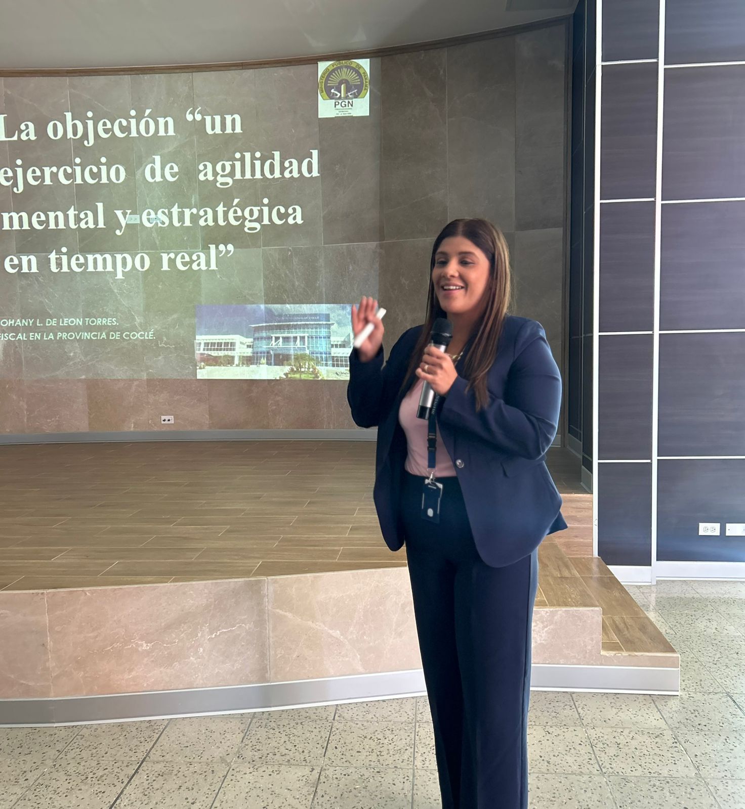 La jornada inició con palabras de apertura de la fiscal superior de la fiscalía regional de Coclé, Johany de León, quien destacó la importancia de la capacitación continua como pilar fundamental para fortalecer el desempeño dentro del sistema penal acusatorio. Asimismo, participó como expositora, desarrollando el tema relacionado con el manejo de las objeciones en juicio oral.
