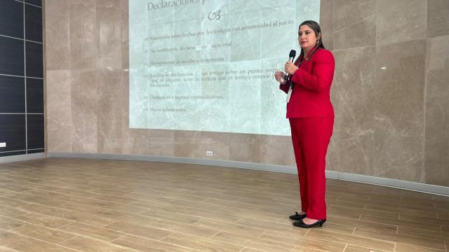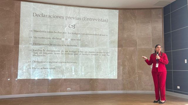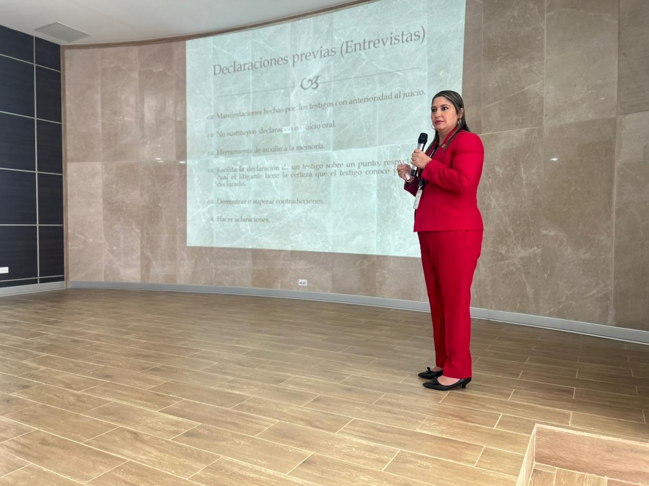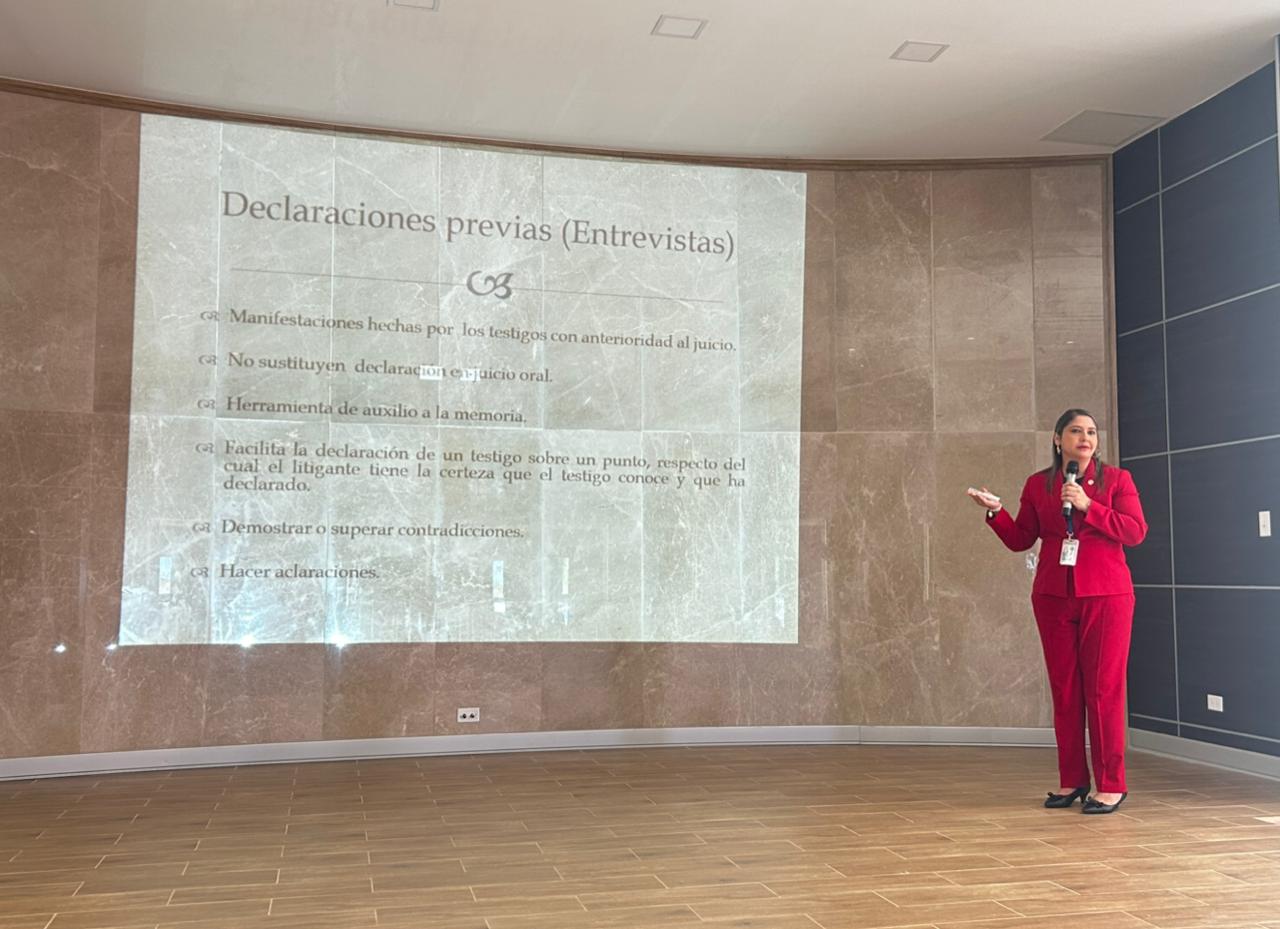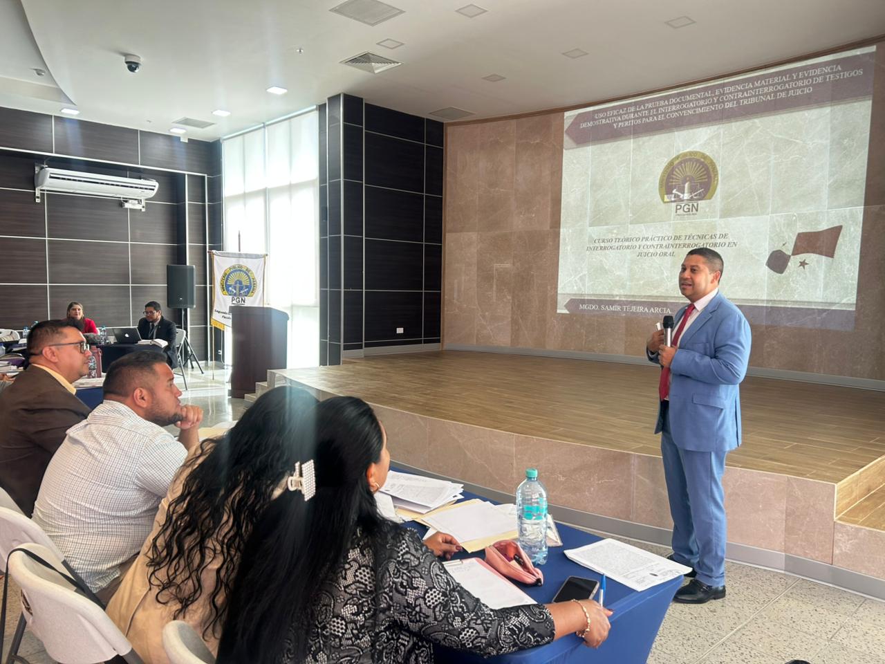 Durante el primer y segundo día, los participantes abordaron temas clave como la planificación y estructura del interrogatorio, técnicas de contrainterrogatorio, manejo de objeciones, uso de declaraciones previas, así como estrategias para refrescar la memoria del testigo, realizar aclaraciones y evidenciar contradicciones. Asimismo, se desarrollaron contenidos sobre el uso eficaz de la prueba documental, evidencia material y demostrativa, incluyendo su incorporación en juicio a través de testigos y peritos.
