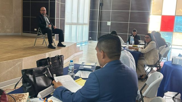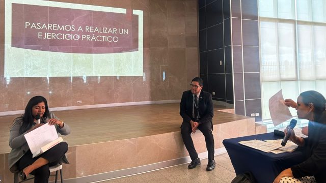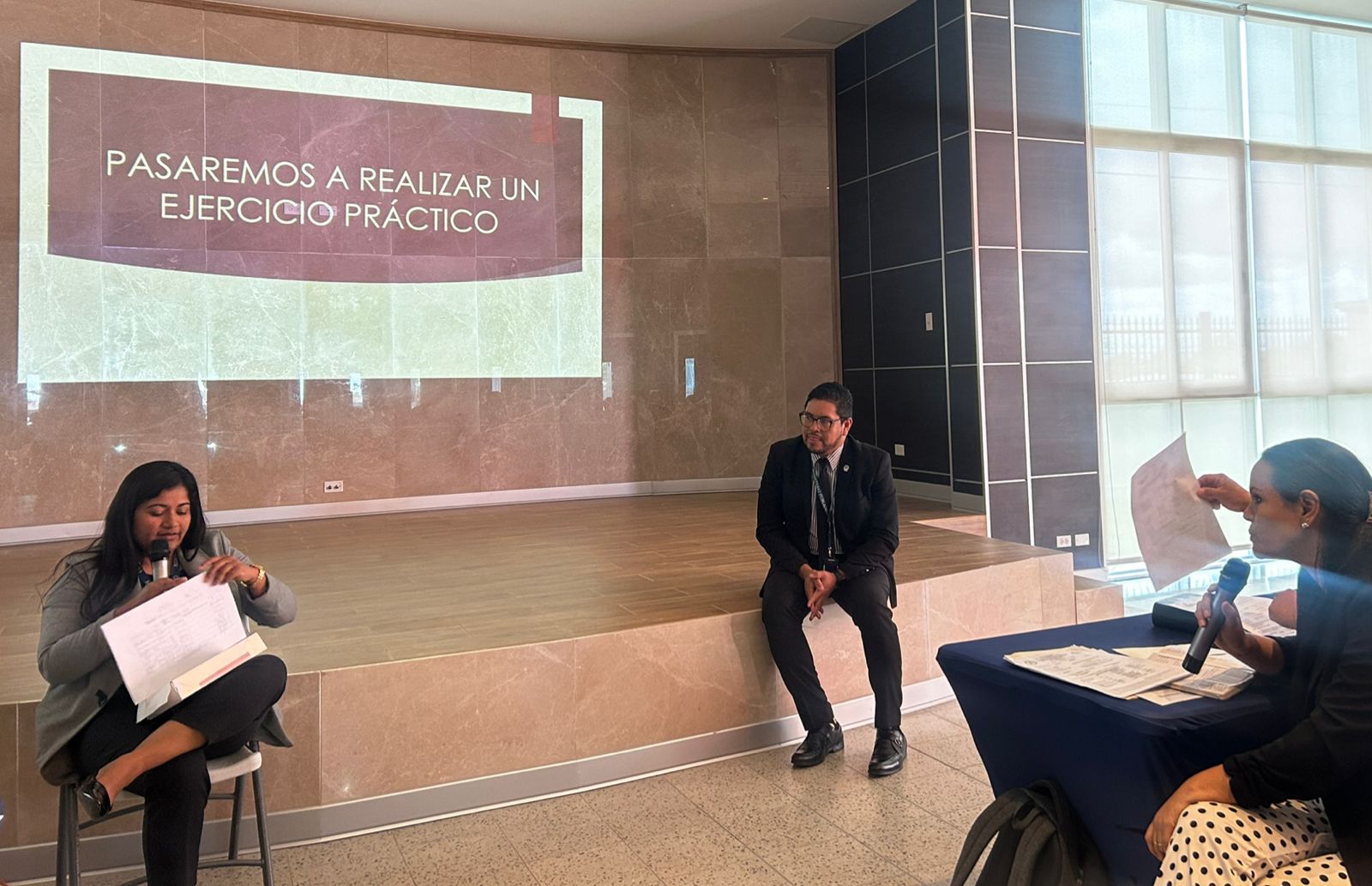 El tercer día estuvo dedicado a la simulación de un juicio oral, donde los participantes, organizados en equipos, asumieron roles de fiscales, defensores y testigos. Durante este ejercicio práctico aplicaron técnicas de interrogatorio, contrainterrogatorio, manejo de objeciones, incorporación de pruebas y presentación de alegatos de clausura, recibiendo retroalimentación directa de los facilitadores.