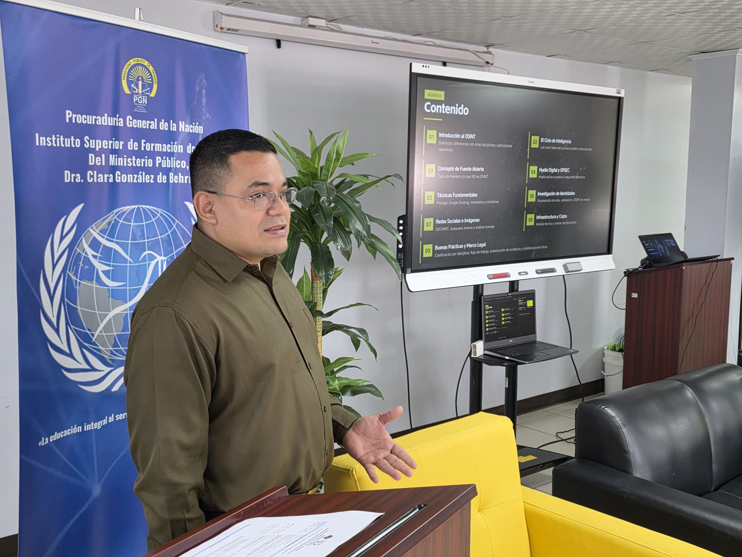 El programa académico, impartido por facilitadores institucionales como los fiscales Igor Blanco, William Granados, Julio Villarreal, Julio Campines, Jairo Samaniego, Agustín Almario y Lorena Gordón incluyendo a los expertos temáticos, Wladimir González, Lizbeth Carrizo, integró novedosos contenidos como los vinculados al uso de tecnologías aplicadas a la investigación penal, incluyendo operaciones encubiertas digitales, análisis en la Deep Web, geolocalización e investigación en fuentes abiertas, así como técnicas como vigilancia, seguimiento, compras controladas, entregas vigiladas e intervención de comunicaciones. De igual forma, se abordaron aspectos jurídicos y procedimentales relacionados con la cooperación internacional en el marco de la Ley 121 de 2013, la protección de víctimas y testigos, y la estructuración de actuaciones fiscales bajo control judicial.