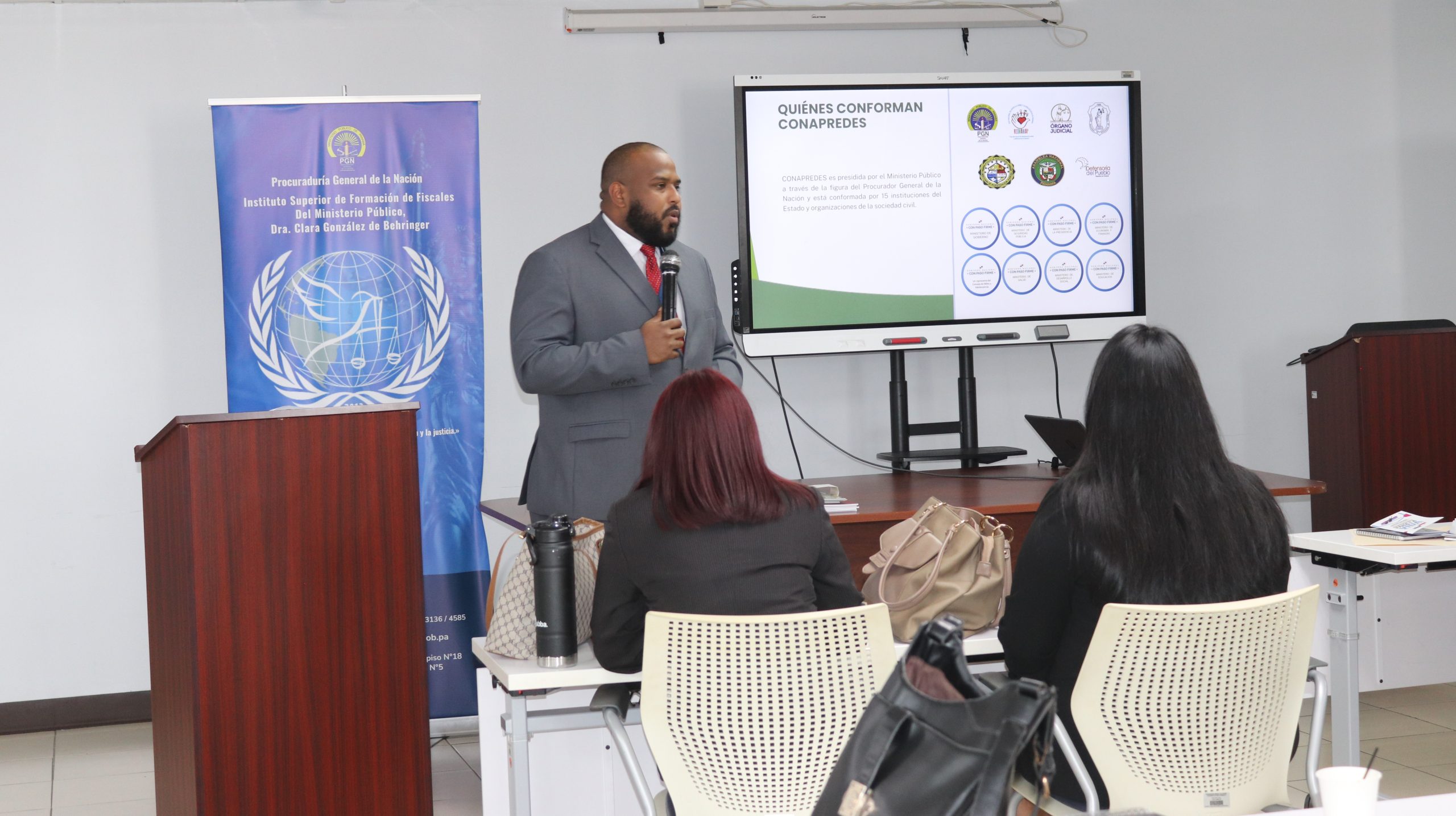 Las exposiciones estuvieron a cargo de funcionarios de distintas áreas de la institución, quienes abordaron diversos temas relacionados con el funcionamiento y las competencias del Ministerio Público. Entre los expositores participó la fiscal Tania Saavedra, de la Fiscalía Superior de Asuntos Legales, quien explicó qué es el Ministerio Público, sus funciones constitucionales y la importancia de la prevención de la corrupción. Asimismo, el licenciado Juan Lorenzo, de la Fiscalía Superior Especializada en Asuntos Civiles y Jurisdicciones Especiales, expuso sobre la defensa de los intereses del Estado en los procesos civiles. Por su parte, el fiscal José Isaac Barrios, de la Fiscalía Superior de Asuntos Legales, abordó los procedimientos ante la Sala Tercera en los que interviene la institución. También participaron la licenciada Jissel Maitín, de CONAPRED, quien explicó el funcionamiento de los programas de prevención de delitos relacionados con drogas, y el licenciado Armando Prado, de CONAPREDES, quien presentó aspectos vinculados con la prevención de delitos sexuales.