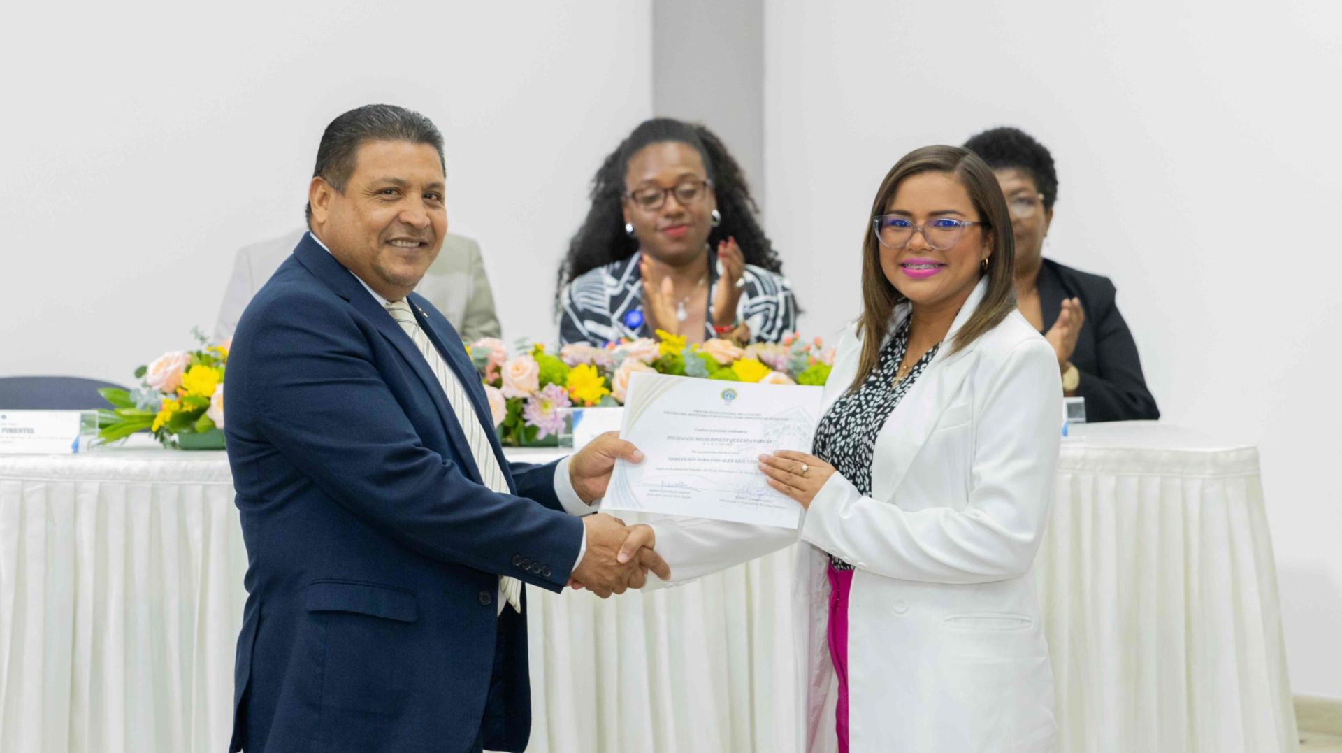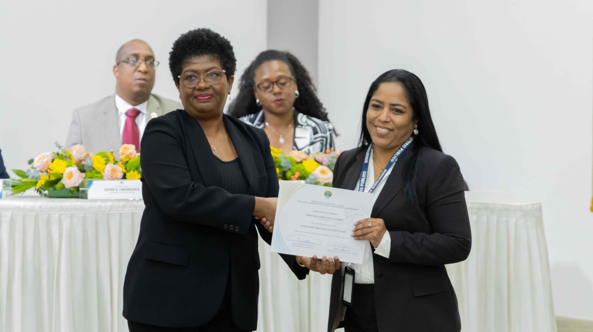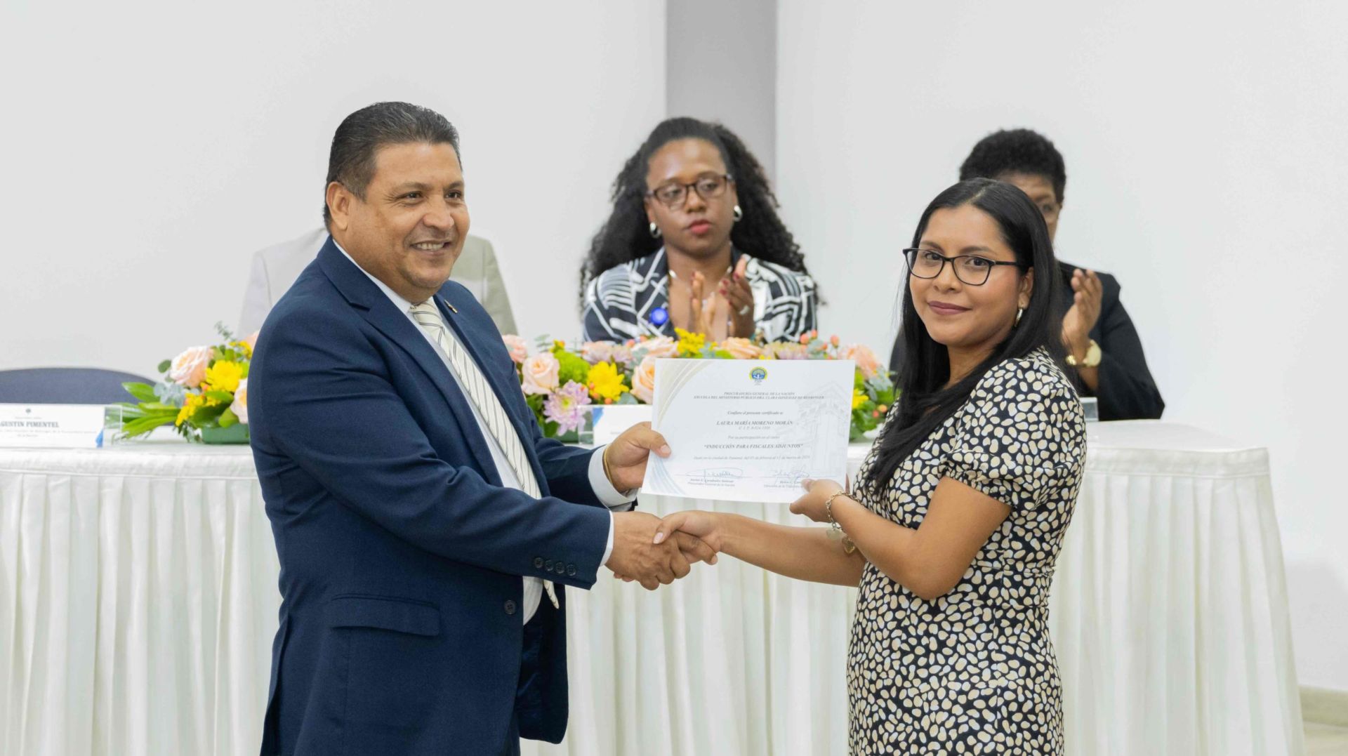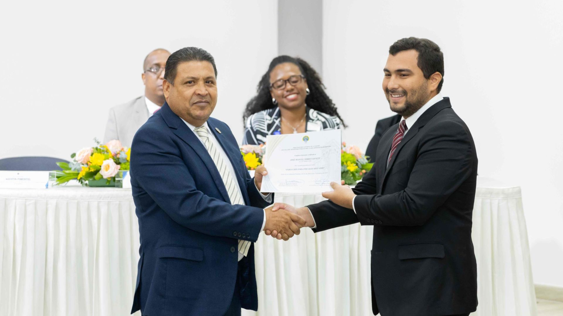 El Procurador General de la Nación, Javier Enrique Caraballo Salazar, destacó que estos fiscales han sido nombrados luego de pasar por un riguroso periodo de selección, luego de llegar a la institución mediante un concurso abierto donde se les sometió a diversos exámenes de conocimiento, se les dio capacitaciones, un curso de inducción, una pasantía y un examen de inducción y reciben su certificado que los acredita como idóneos para ser Fiscales Adjuntos y les reconoce una plaza de trabajo a los que pasaron con mejor puntaje.