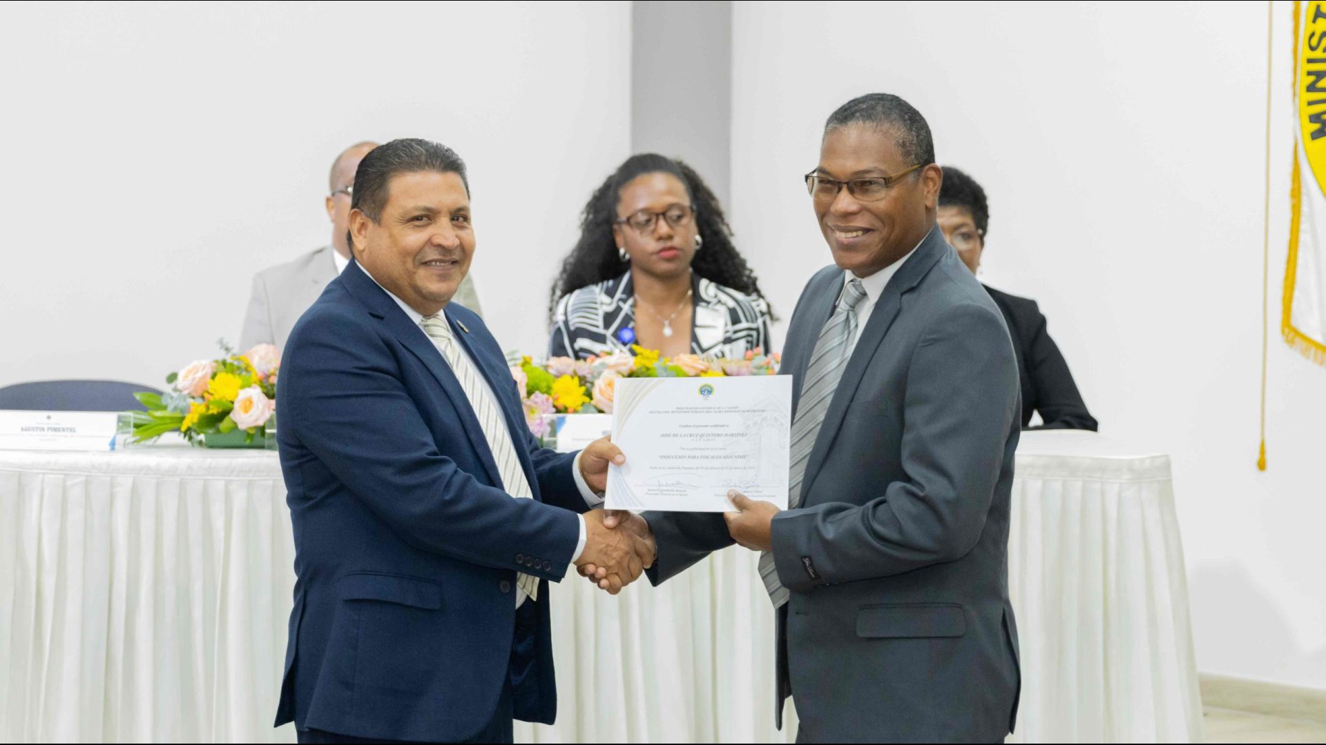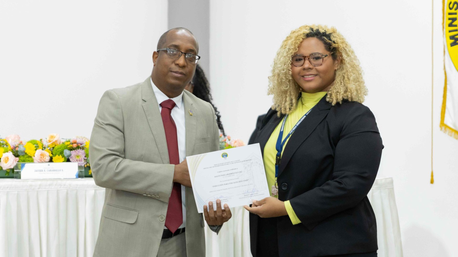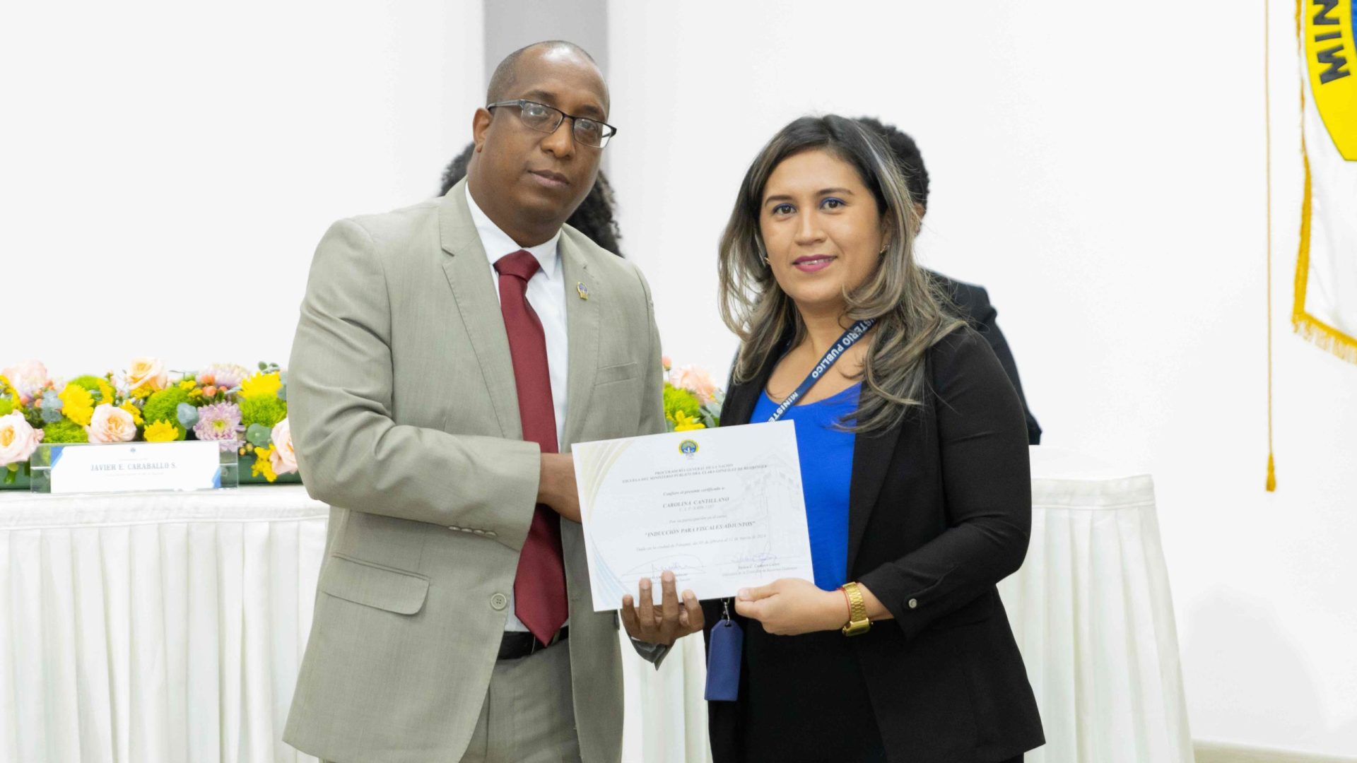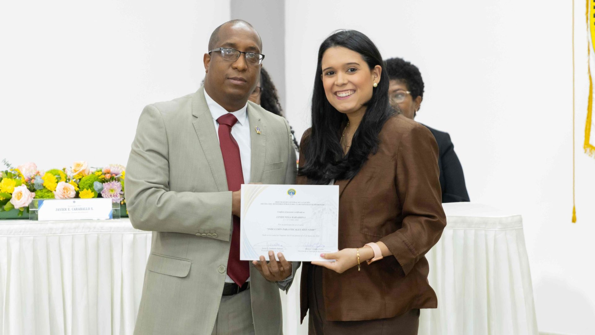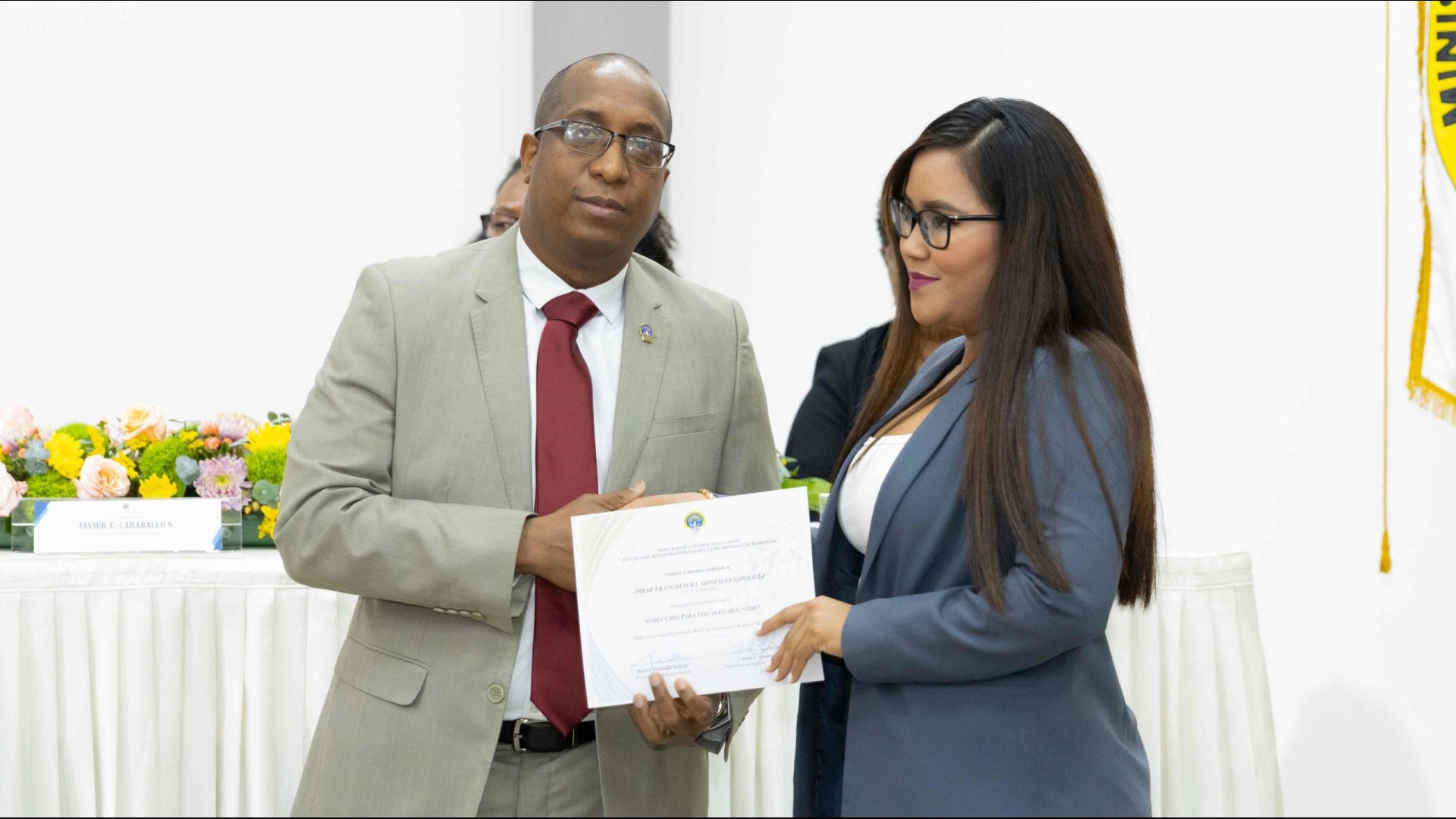 El Procurador General de la Nación, Javier Enrique Caraballo Salazar, destacó que estos fiscales han sido nombrados luego de pasar por un riguroso periodo de selección, luego de llegar a la institución mediante un concurso abierto donde se les sometió a diversos exámenes de conocimiento, se les dio capacitaciones, un curso de inducción, una pasantía y un examen de inducción y reciben su certificado que los acredita como idóneos para ser Fiscales Adjuntos y les reconoce una plaza de trabajo a los que pasaron con mejor puntaje.