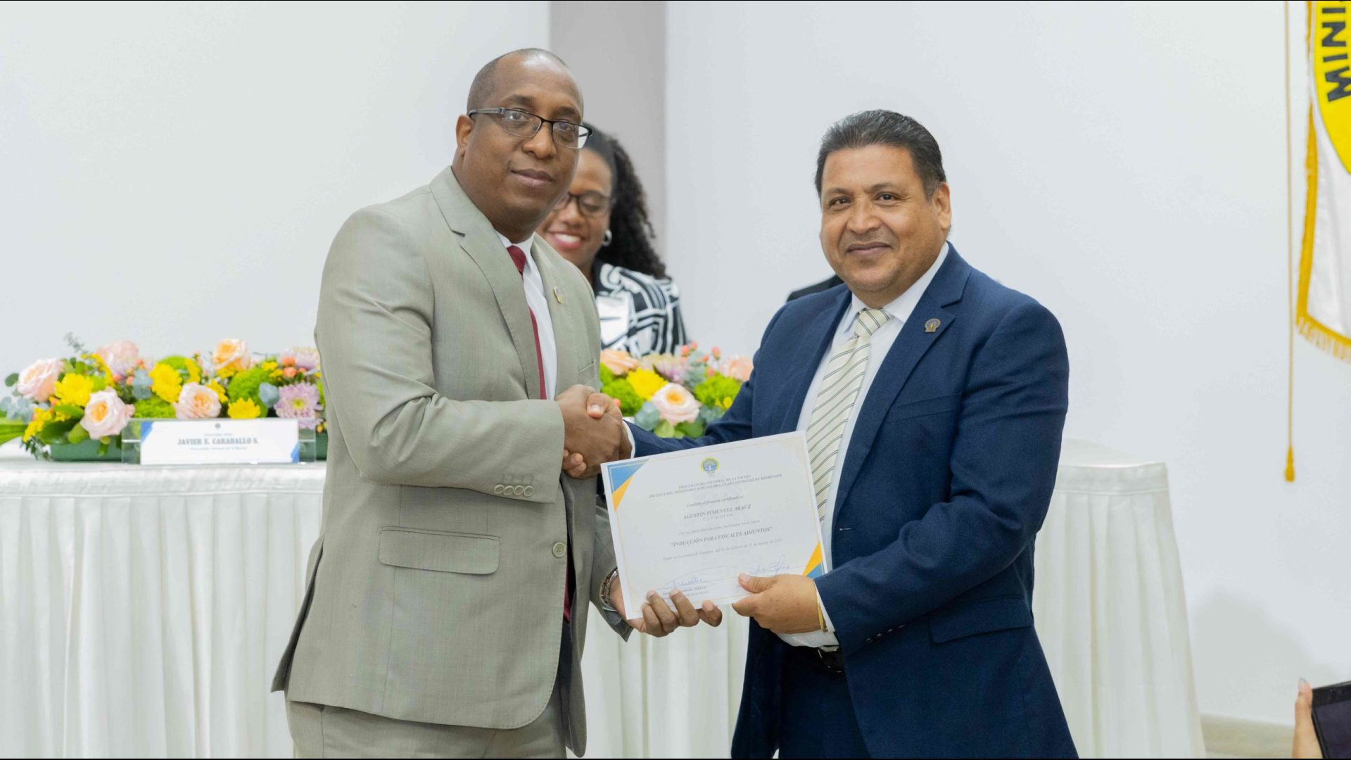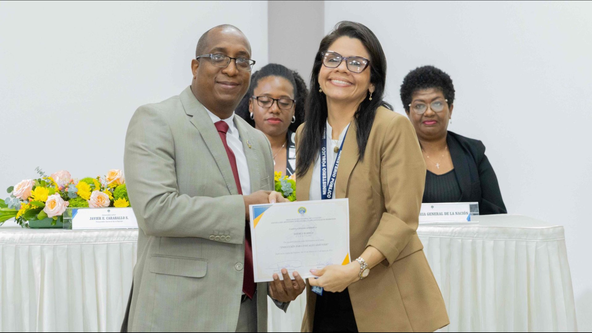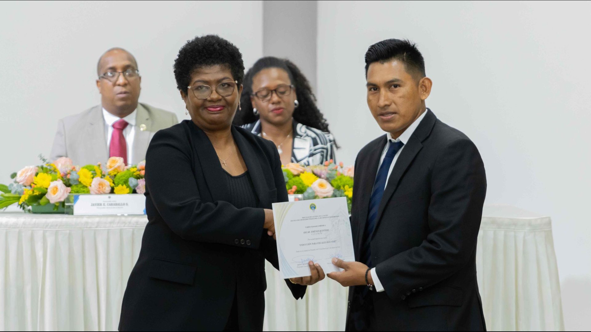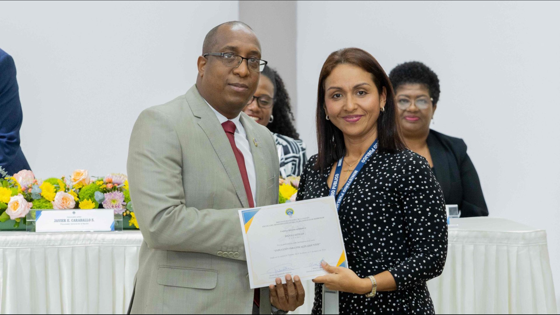El Procurador General de la Nación, Javier Enrique Caraballo Salazar, destacó que estos fiscales han sido nombrados luego de pasar por un riguroso periodo de selección, luego de llegar a la institución mediante un concurso abierto donde se les sometió a diversos exámenes de conocimiento, se les dio capacitaciones, un curso de inducción, una pasantía y un examen de inducción y reciben su certificado que los acredita como idóneos para ser Fiscales Adjuntos y les reconoce una plaza de trabajo a los que pasaron con mejor puntaje.