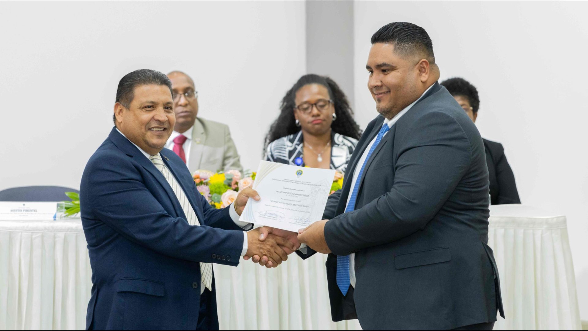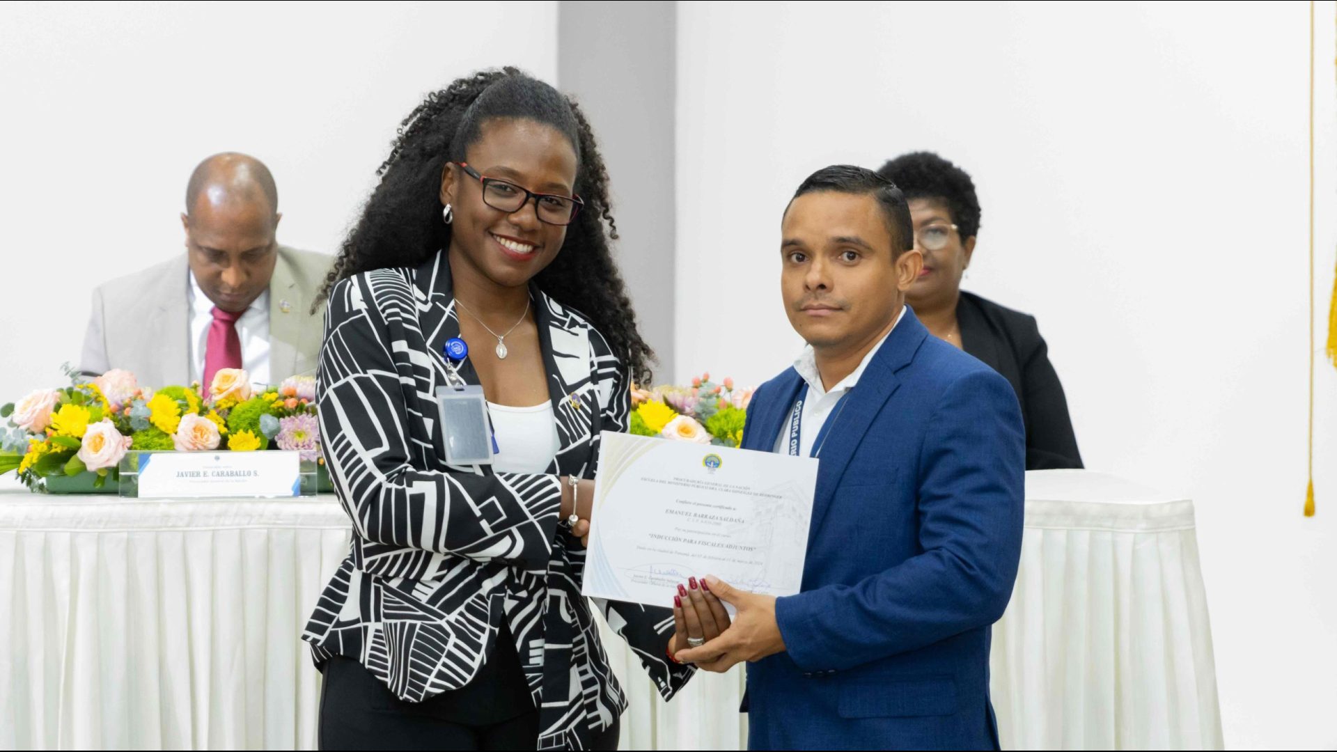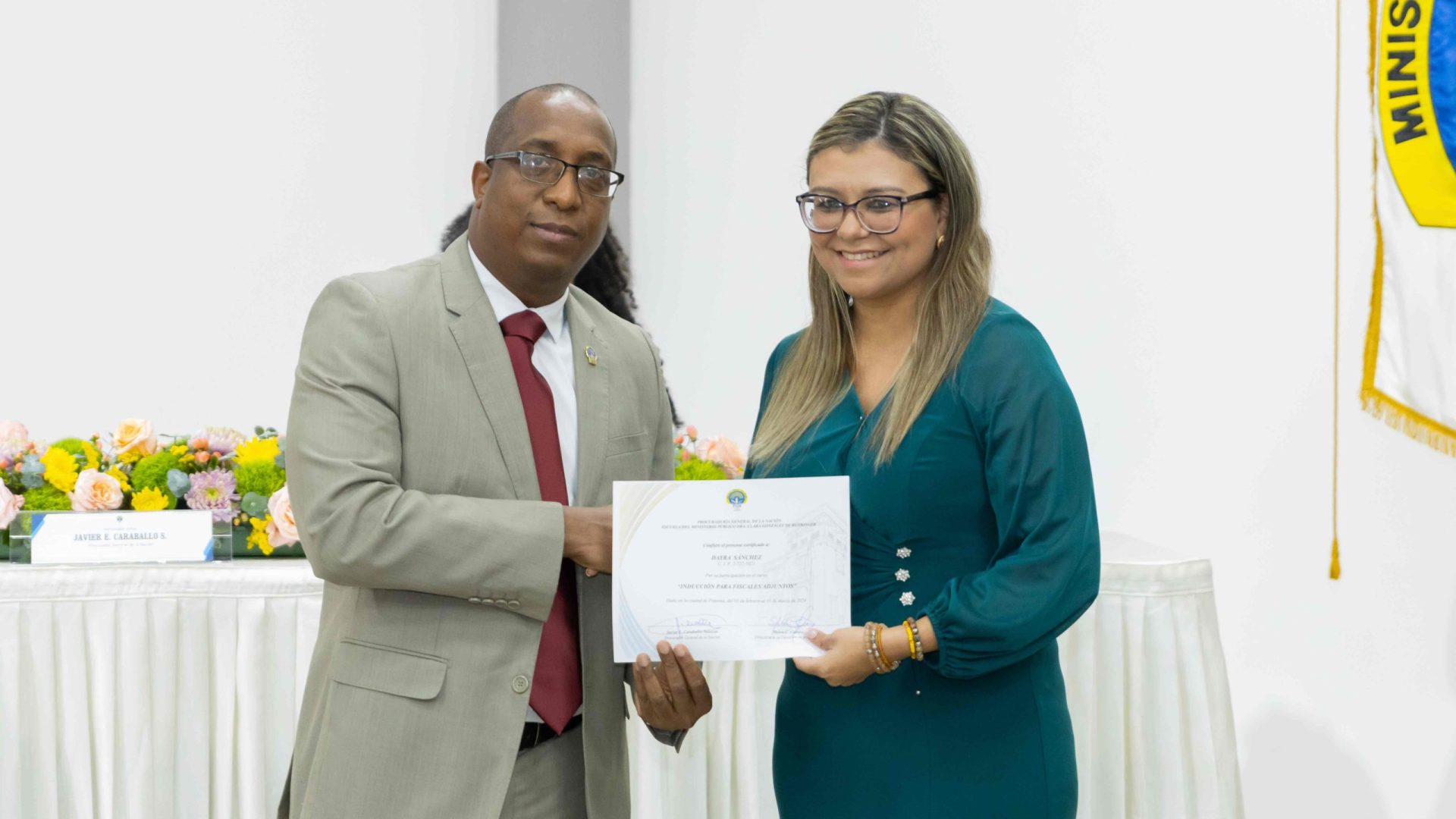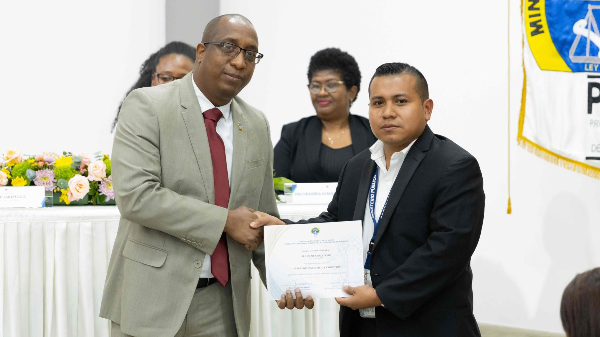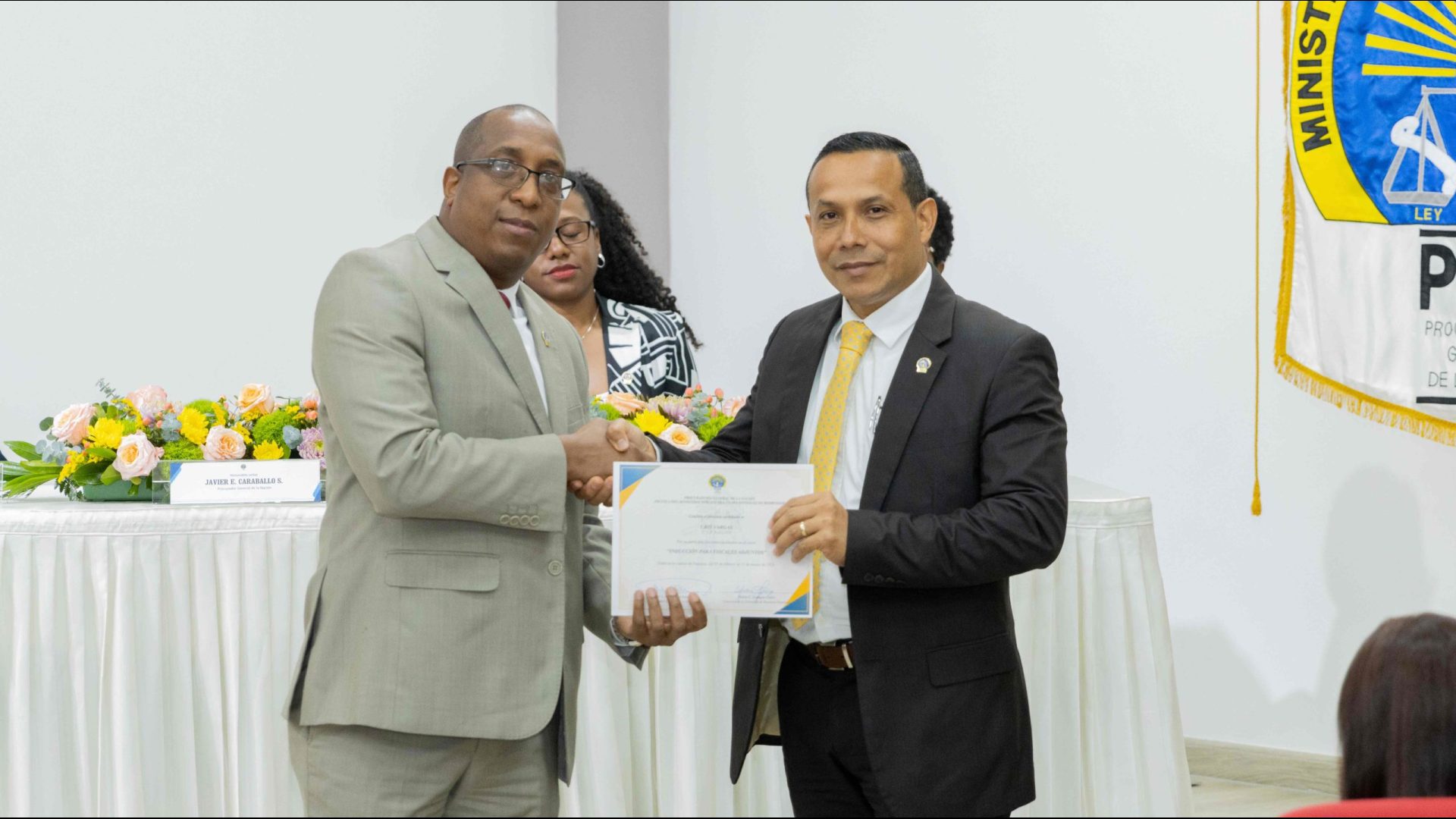 El Procurador General de la Nación, Javier Enrique Caraballo Salazar, destacó que estos fiscales han sido nombrados luego de pasar por un riguroso periodo de selección, luego de llegar a la institución mediante un concurso abierto donde se les sometió a diversos exámenes de conocimiento, se les dio capacitaciones, un curso de inducción, una pasantía y un examen de inducción y reciben su certificado que los acredita como idóneos para ser Fiscales Adjuntos y les reconoce una plaza de trabajo a los que pasaron con mejor puntaje.