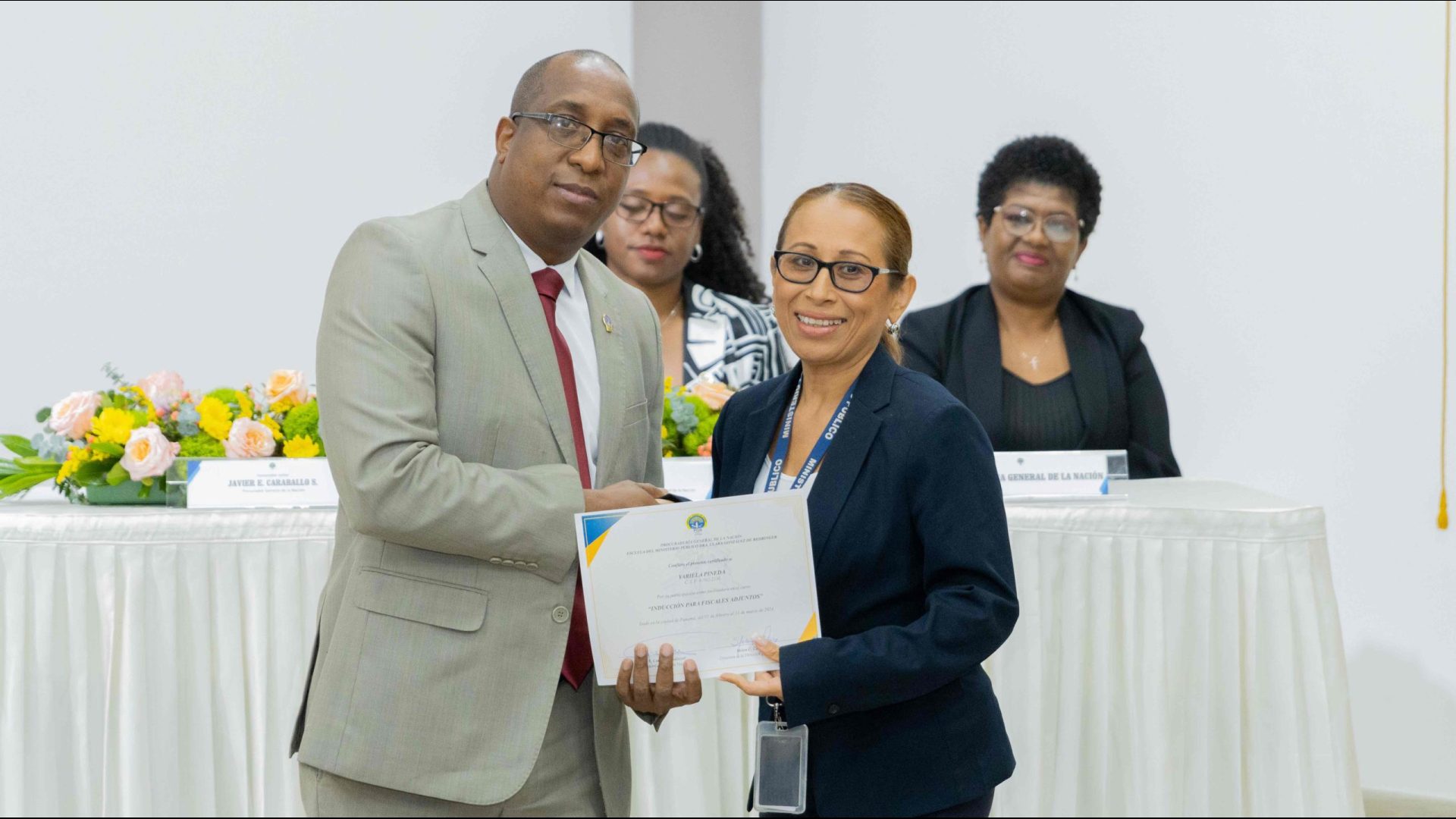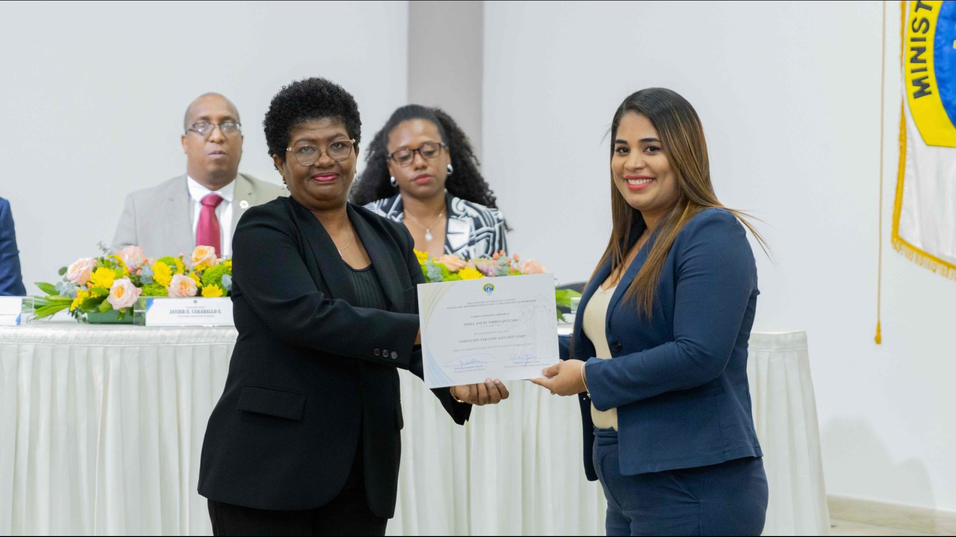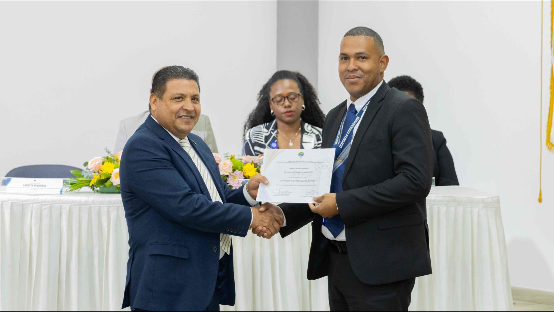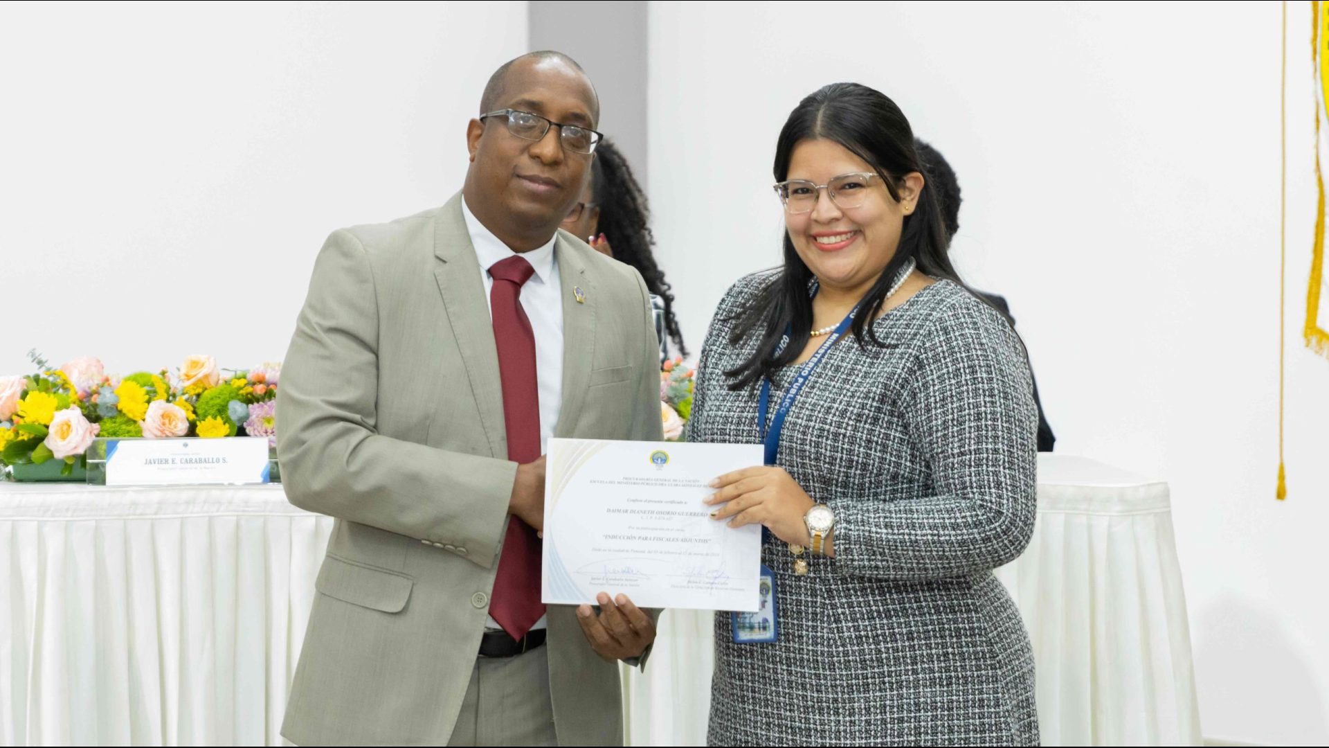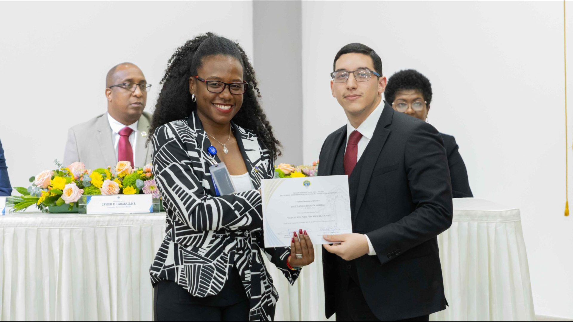 El Procurador General de la Nación, Javier Enrique Caraballo Salazar, destacó que estos fiscales han sido nombrados luego de pasar por un riguroso periodo de selección, luego de llegar a la institución mediante un concurso abierto donde se les sometió a diversos exámenes de conocimiento, se les dio capacitaciones, un curso de inducción, una pasantía y un examen de inducción y reciben su certificado que los acredita como idóneos para ser Fiscales Adjuntos y les reconoce una plaza de trabajo a los que pasaron con mejor puntaje.